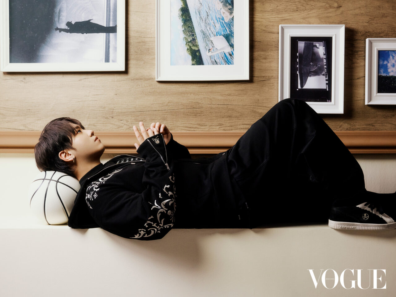 這次拍攝,我們構想了一個超現實的場景,將重力顛倒,在這個充滿無限可能的幻想空間裏,呈現姜濤的多重面貌。他一下換上型格全黑的 MASTERMIND WORLD 服裝,在籃球場上展現帥氣身影;一下又回到室內場景,活潑起舞,甚至在場外與製作組較量射籃,現場充滿歡聲笑語。這彷彿是在告訴我們,他能在「MIRROR團員、歌手、演員、朋友」等多重身份間自在遊走,但始終如一地保持最真實的自己。