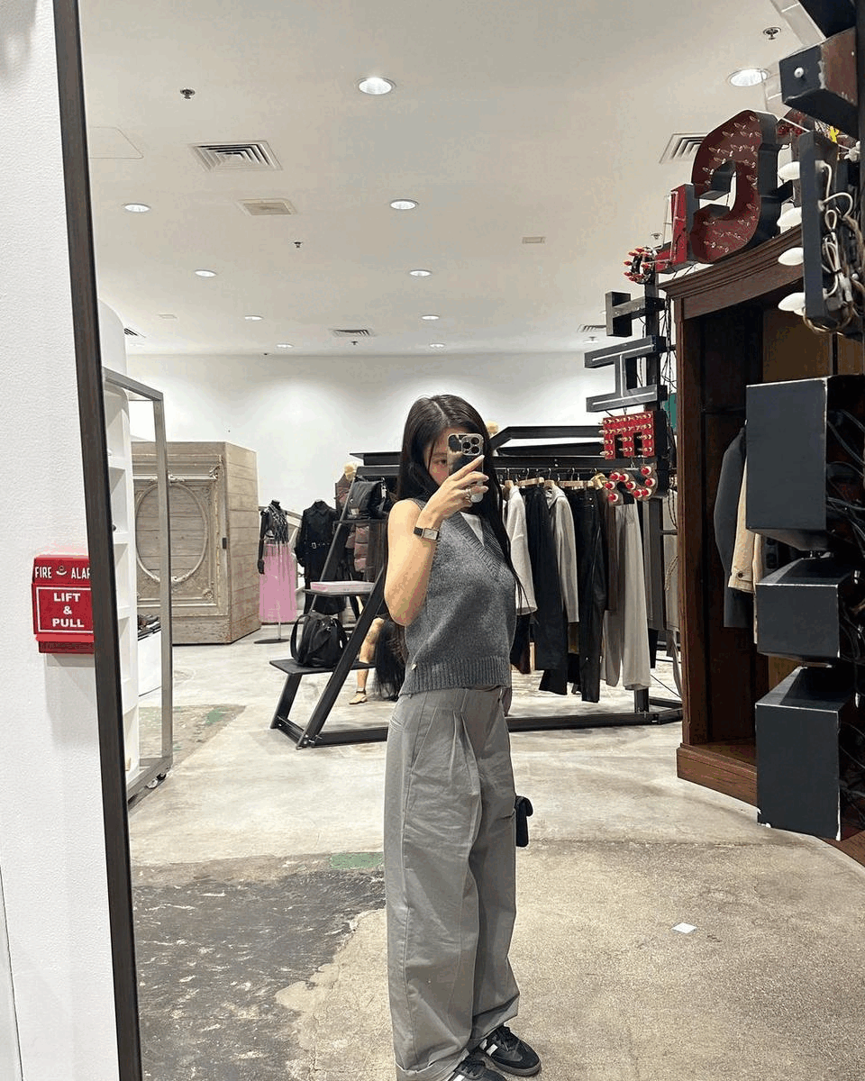 上身剪裁以短身設計配搭下身寬鬆闊腿長褲,是非常顯比例的百搭穿搭法,也是不少K-pop 明星最愛的私下和練舞時的穿搭方式。無論是色彩T-shirt、緊身胸衣top、衛衣或毛衣都能用作配搭,當你衣櫥同時擁有這些單品,就能為造型帶來更多變化,以一種最簡單輕鬆的方式打造毫不費力日常休閒風格。