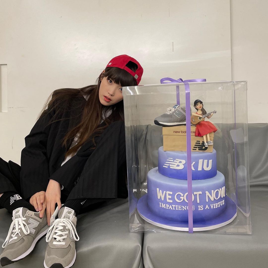 有「國民妹妹」之稱的 IU 入行12年,一直憑健康正面的形象累積觀眾緣,最近還成為運動品牌 New Balance 的首位亞太區品牌大使。 IU 除了展示舒適的 New Balance 574元祖灰鞋款,還獲得品牌送上的球鞋蛋糕,賣相特別可愛。