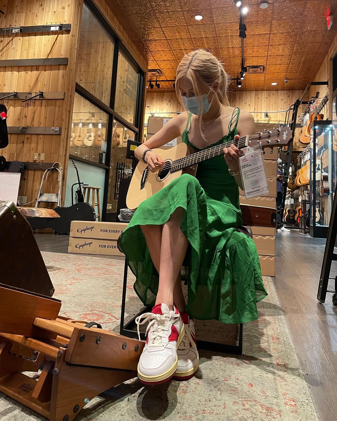 Rosé 一舉一動備受矚目,她早前與 Jennie 在美國洛杉磯錄唱新歌引起關注,早前又在JTBC 綜藝節目《期盼已久的大海》 (바라던 바다) 中翻唱 John Mayer 的〈Slow Dancing in a Burning Room〉獲得好評。全能的 Rosé 日前上載自己穿上綠色背運身裙彈結他的清新造型,當中亮點莫過於是她的 Rhude 白色球鞋。Rhude 來自洛杉磯的服飾品牌,由Rhuigi Villasenor在2013年創立,一直以來以Grunge風格為設計靈感,獲得喜愛街頭風格的年輕人和不少 NBA 球星的支持; Rosé 穿上的 Rrhecess 系列球鞋以紅白色為重點,鞋身亦有懷舊設計,能夠配搭不同服裝。
