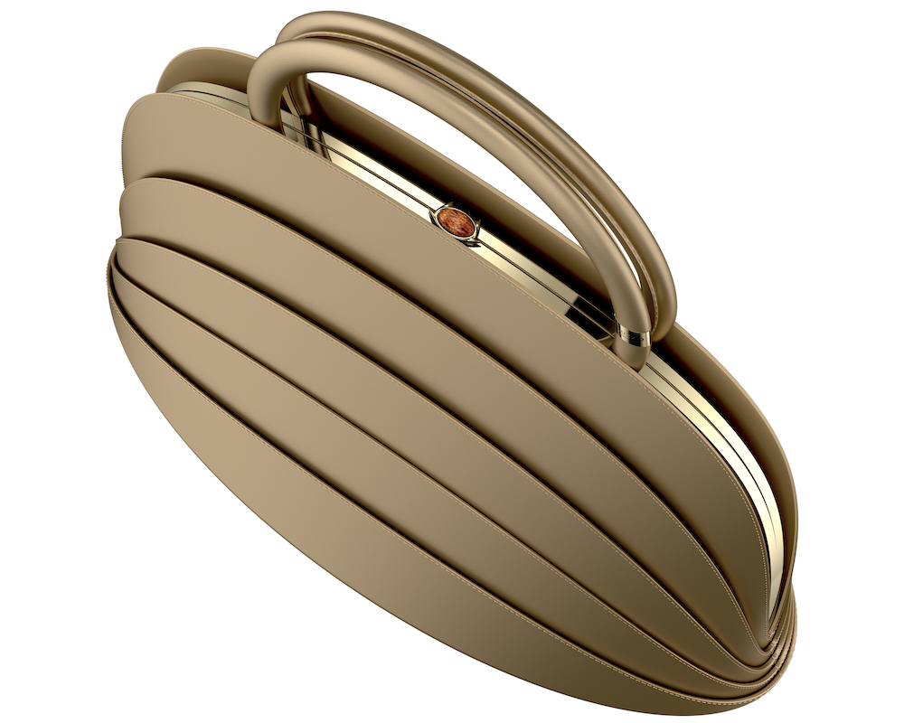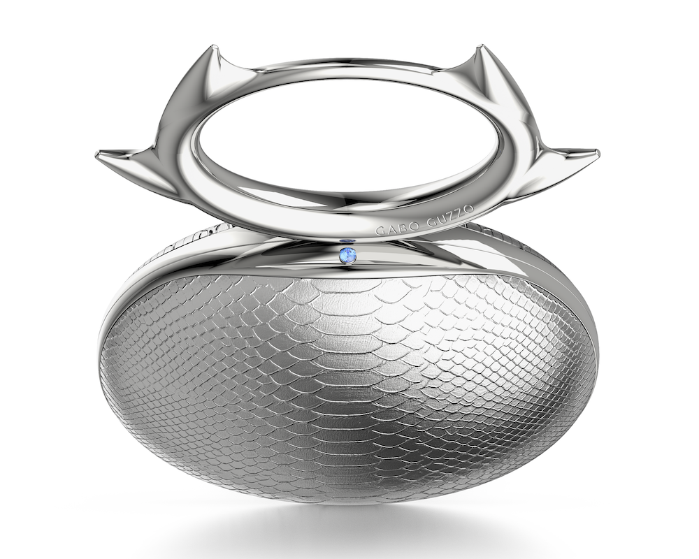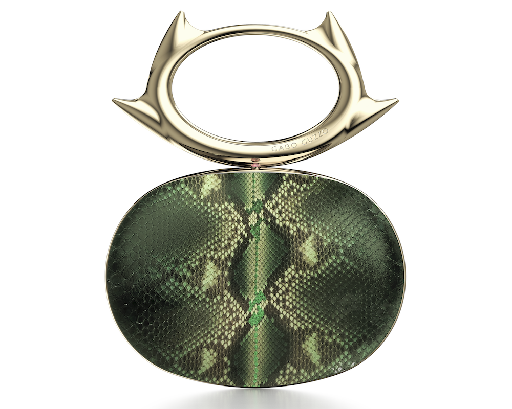 Gabo Guzzo 筆下的每個手袋設計都具有建築特色的俐落輪廓,靈感來自於大自然,特別是生物學及植物學更讓他著迷,也成為設計藍圖的重要泉源。而物料更採取銀面小牛皮、或是取自永續來源的稀珍物料,並綴以採用藍寶石、鷹眼石、孔雀石和翡翠製成的寶石釦。不過這一切奢華氣質的打造更有賴於純意大利珍貴的頻臨手工藝,同時以傳統佛羅倫丁的金屬工匠製作。如今科技的進步同時也侵蝕傳統手工藝的生存空間,