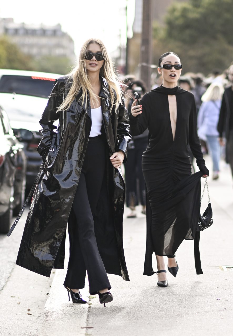PARIS, FRANCE - SEPTEMBER 28: Jessie Andrews is seen wearing a black Givenchy trench coat and black sunglasses with black heels outside the Givenchy show during the Womenswear Spring/Summer 2024 as part of Paris Fashion Week on September 28, 2023 in Paris, France. (Photo by Daniel Zuchnik/Getty Images)