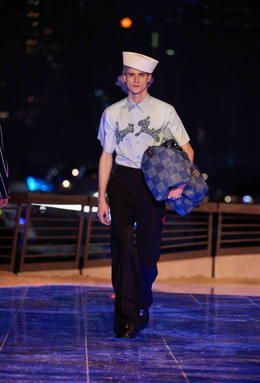 水手會在明月和繁星的引領駛向新的地平線,Pharrell Williams為Louis Vuitton打造品牌首個初秋男裝系列時裝展時,透過航海主題展示旅行能連繫夏威夷以至香港的力量,滑浪及熱帶花朵圖案等元素,讓身處香港繁華都會的人亦能感受夏威夷海灘的能量。滑浪好手的造型變成以潛水布打造和以飾珠標誌點綴的套裝,還有麻布西裝和揉合滑浪圖案的熱帶花朵印花;以酒椰葉織成的鞋和帽子也體現這種感覺,與編織海灘手繩和以木珠和琺瑯花朵製成的吊飾珠寶互相呼應。