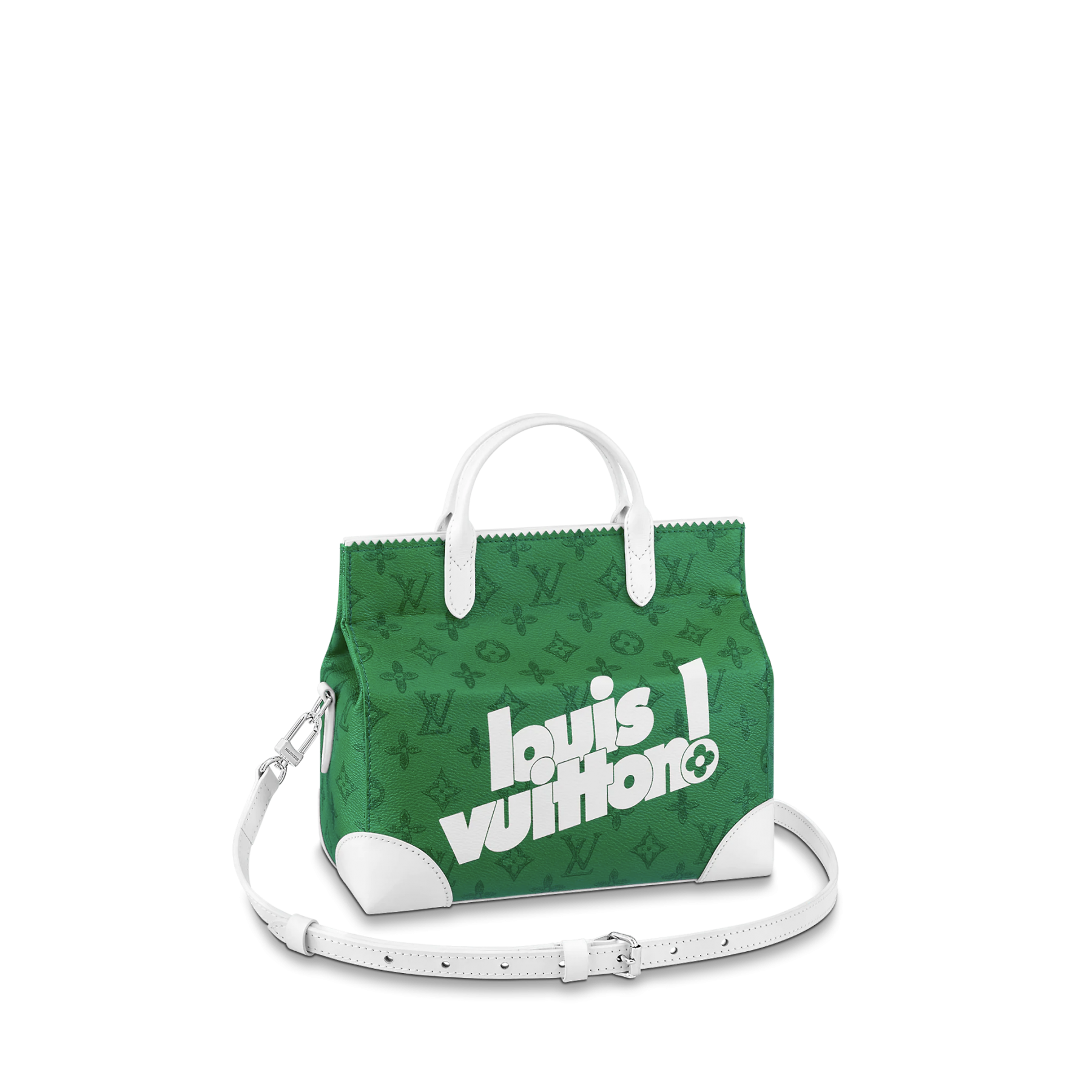 由 Virgil Abloh 以Vintage Monogram帆布製作,飾以其最新的「louis vuitton!」標誌。引人注目的幾何風格經常運用在日常的購物袋上,袋身配有可調節長度肩帶及頂部手柄,提供多種攜帶方式,這種得意可愛的手提袋設計加上流行的 GEN Z Green,相當適合女生使用。