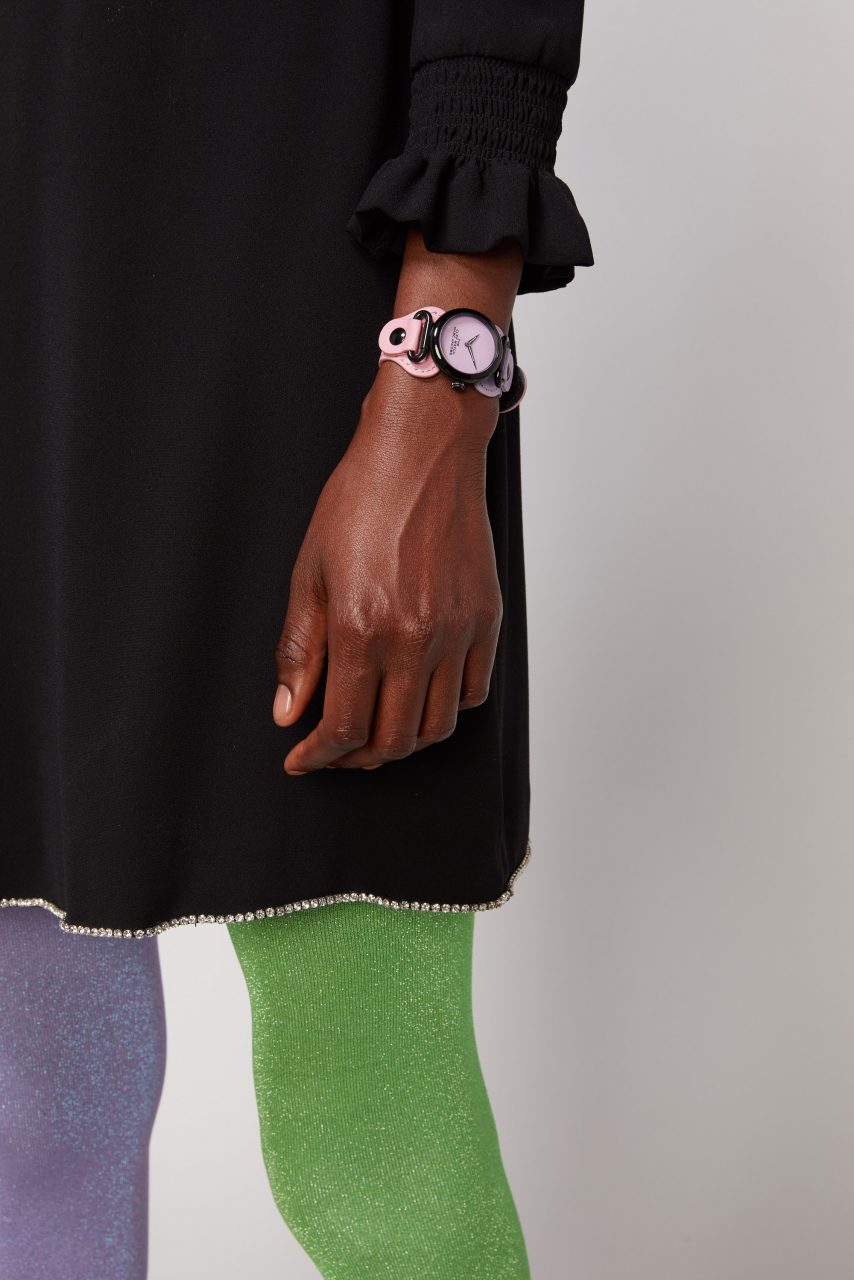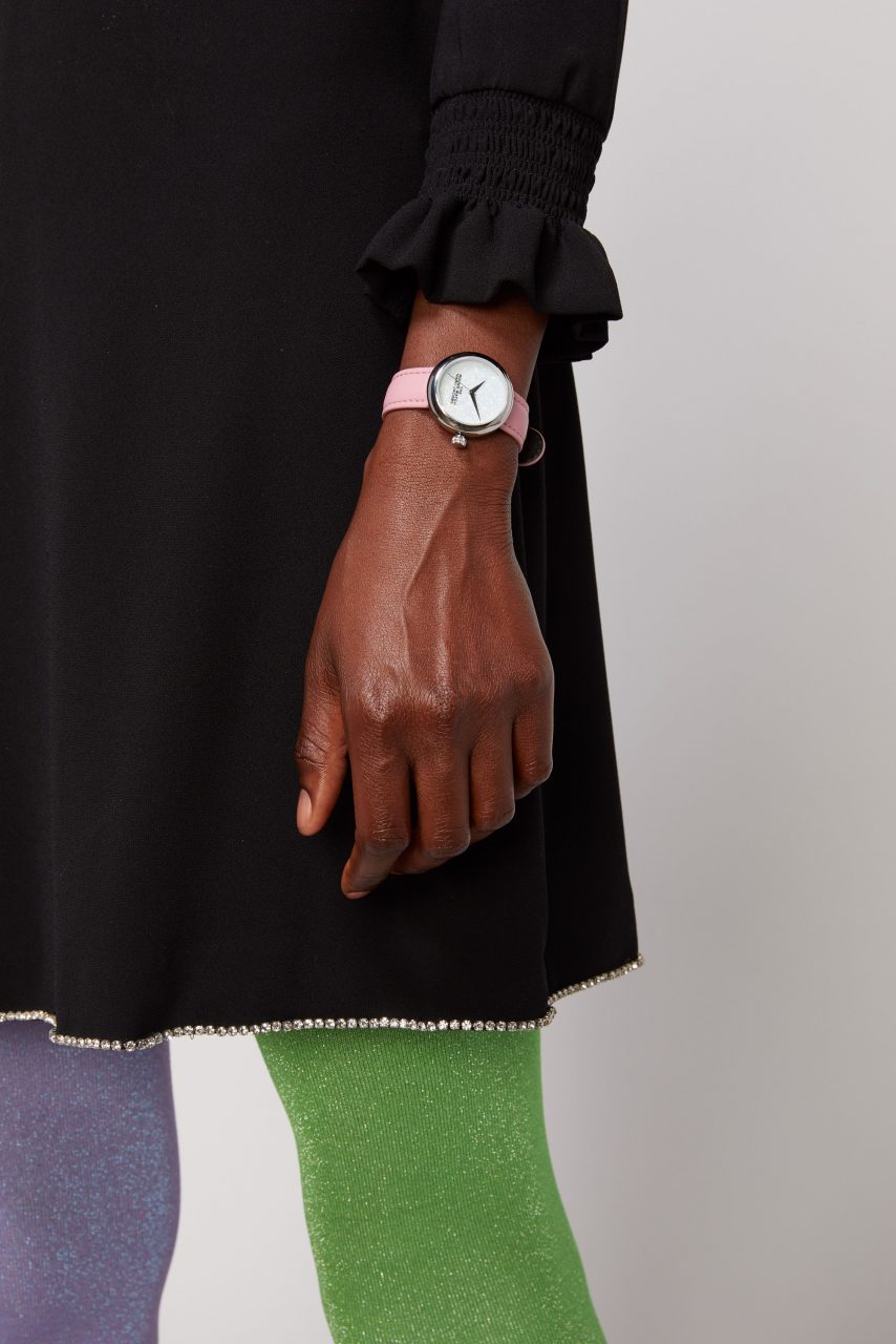 除了服飾,The Marc Jacobs今季推出了迷你手袋和像首飾般的腕錶,手袋除了有著名的snapshot款式,還把Marc Jacobs 2019年春夏的手袋化身成更實用的設計。而年中推出的Pillow bag也有新色,迎合了各大品牌也推出了軟身的設計,The Marc Jacobs快人一步推出的Pillow bag有望成為品牌下一個cash cow。而最教人愛不釋手的,必定是其手錶設計,有頸鏈的錶芯設計,也有像珠寶一樣的變奏版本,在Apple Watch及智能手機過度流行的年代,裝飾性的設計讓我們多了一個配戴手錶的原因,也是一個送禮的好選擇,在2020年代開始前,我們都需要更多的傳統,更少的進取和創新。