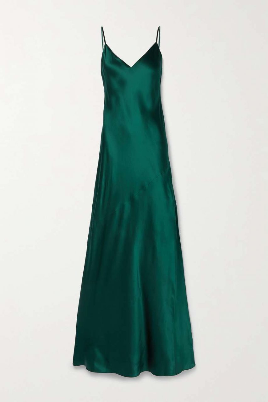 毫無多餘裝飾的極簡風格針織連身裙,腰線有鏤空細節,和不對稱單肩剪裁互相呼應,褶襉設計在光澤感垂墜面料映襯下,非常靈動。令人佩服的,還有以金色手鐲點綴的配飾風格,簡單俐落,不會顯得過於隆重和 Over dressing,看起來完美無瑕!