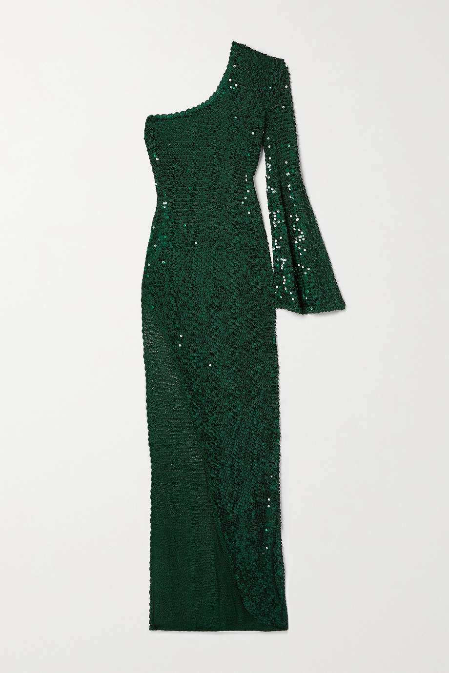 RETROFÊTE Celeste one-shoulder sequined open-knit gown