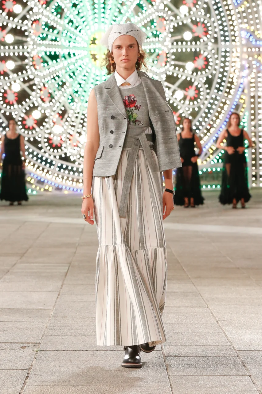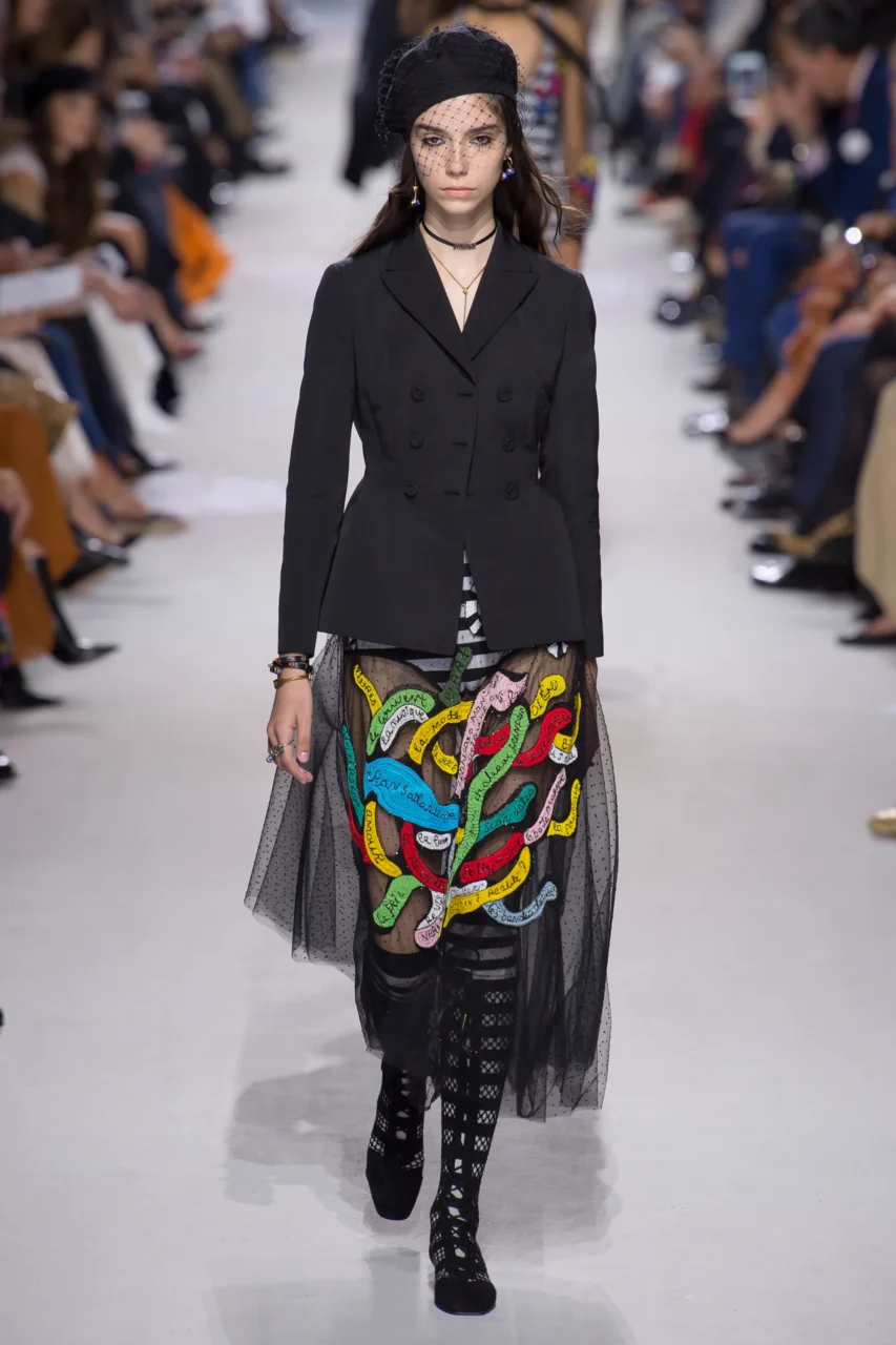 Chiuri還努力在設計上涵蓋Dior整個歷史,她復刻了John Galliano時期經典的Saddle bag和J’adore Dior T恤,並多次致敬效力Dior近30年的Marc Bohan。如果說Chiuri的度假系列巧妙地融入其他地方的在地特色,那麼品牌主線的設計則探索了巴黎人及這座城市的傳奇故事,無論是存在主義或超現實主義運動,還是1968年的五月風暴。