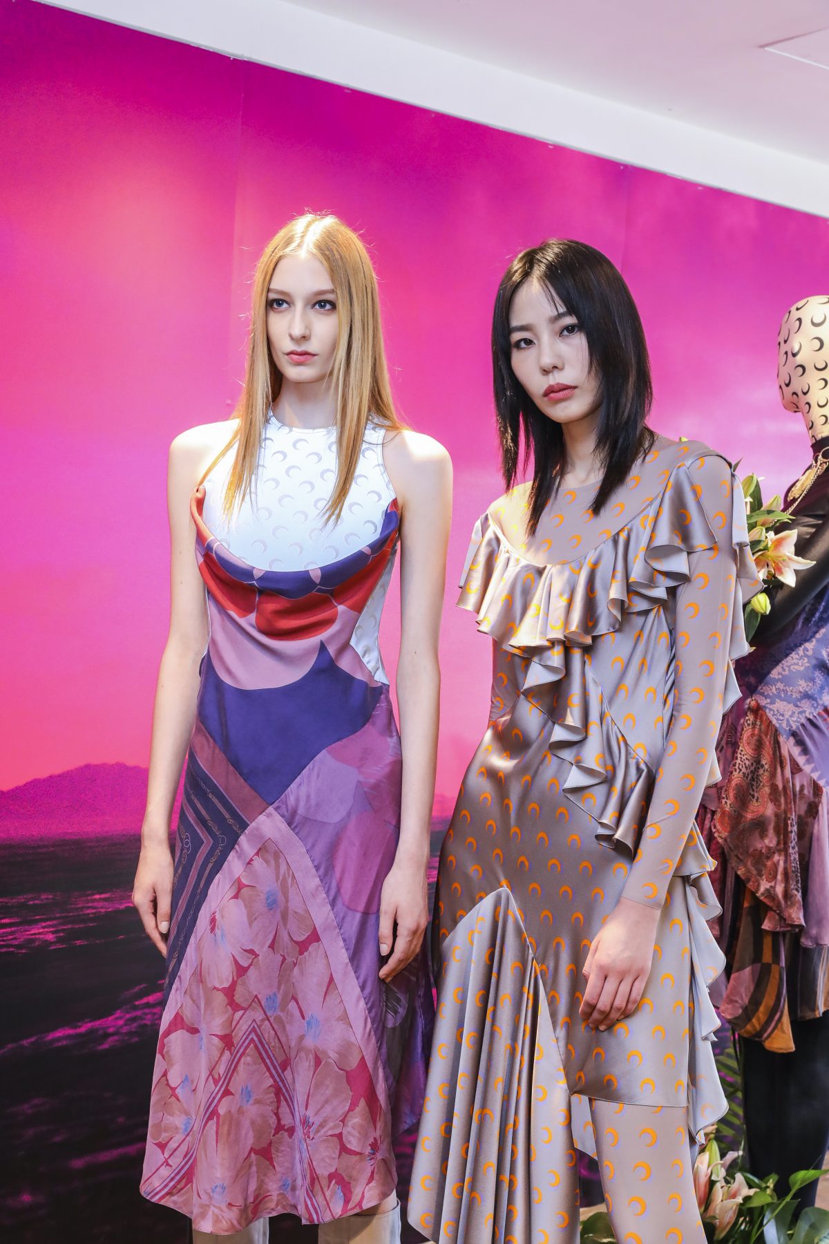 本是司空見慣的伊斯蘭教月亮符號,竟然成為潮流尖端的信徒崇拜之物,讓 Marine Serre 身上自帶時尚明星的光環。可是這對 Marine 本人豪不重要,因為當初的新月只是為取代以自己名字為品牌 logo 的選擇,實在難以想像如今人人頭戴新月髮帶的現象。當被問到倘若失去新月標誌,品牌形象該如何是好?「其實我的設計遠超越新月標誌本身的意義,而 Upcycling (循環再造) 設計早默默為品牌奠定基礎,如 “Green line” 使用的再造纖維佔據系列的50%。 雖然我不知道月亮符號對香港人意味着甚麼,但我所設計給女性便是簡約富有功能性,就算針織背心加牛仔褲也可以超級性感,這遠比標誌更有意義。」