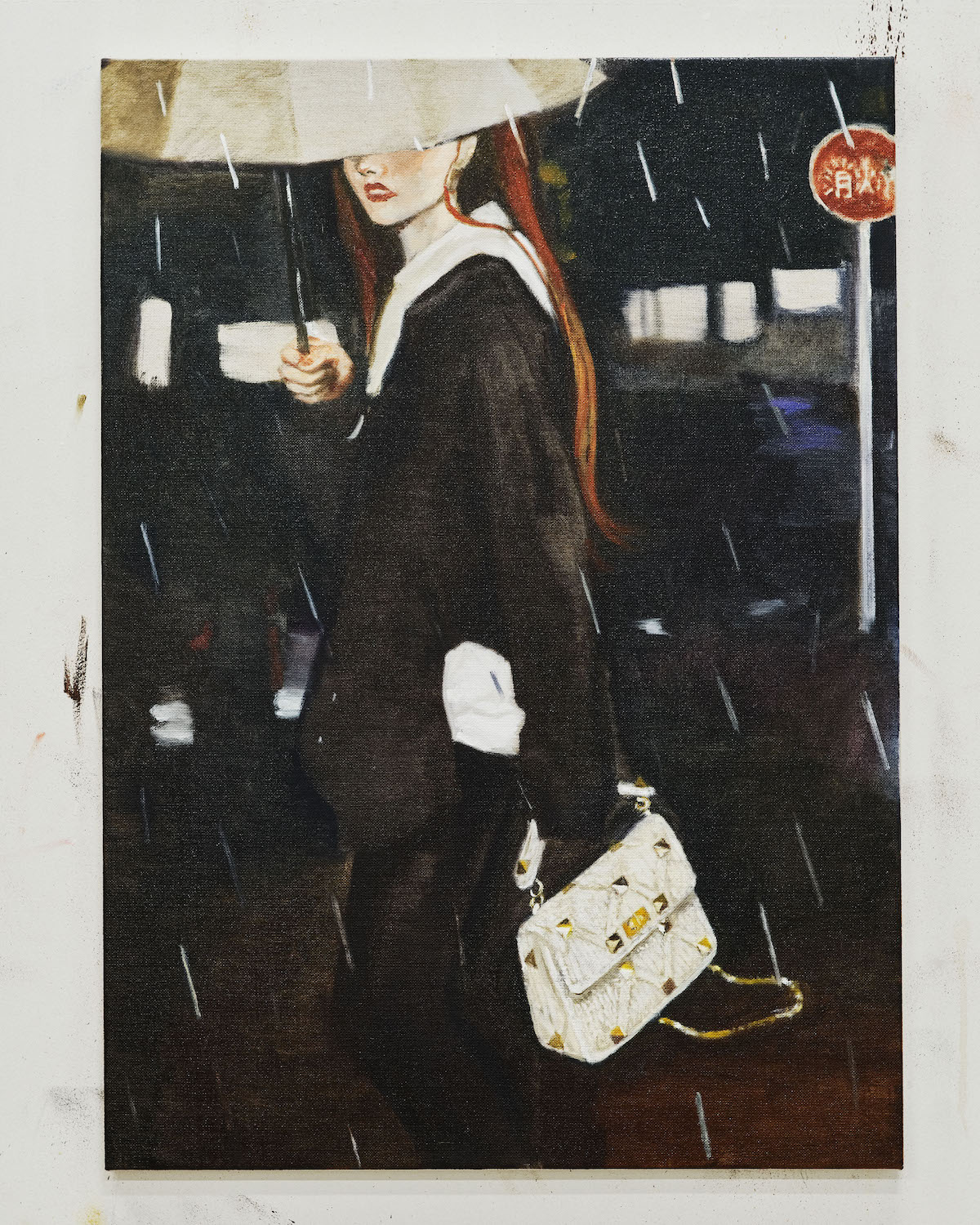 來自日本的長島伊織(Iori Nagashima)繪下這幅《青い雨》,以畫筆勾勒出女生在雨中挽着 Valentino Garavani Roman Stud Crochet 手袋的情景。畫中的女生穿上黑色服裝,白色 Valentino 手袋尤為顯眼,而這正是藝術家想要突顯的事物,「手袋是主要元素,我想以一種寫實的感覺來繪製它。我想描繪一個故事,就如小說或電影,試圖捕捉一個奇特的瞬間。」