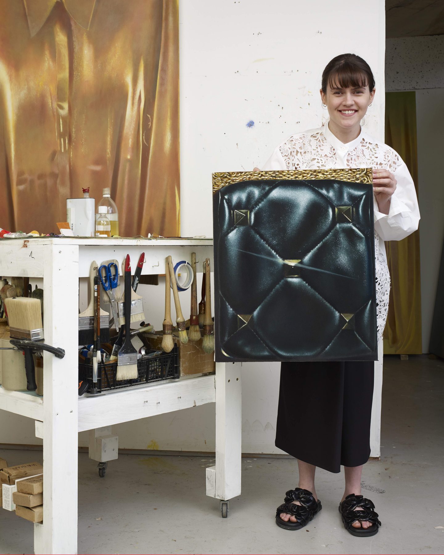 來自英國的 Louise Giovanelli 以 Valentino Garavani Roman Stud Top Handle 手袋為主角,繪製放大的手袋一角,金色窩釘點綴的黑色手袋構成一幅超寫實油畫。畫作名為《Dominion》,Louise 表示:「我希望這幅畫能夠傳遞的內容,及我對於繪畫整體的關注,是展望尋找和感知的方式,鼓勵觀察本身就是富有滿足性的。」