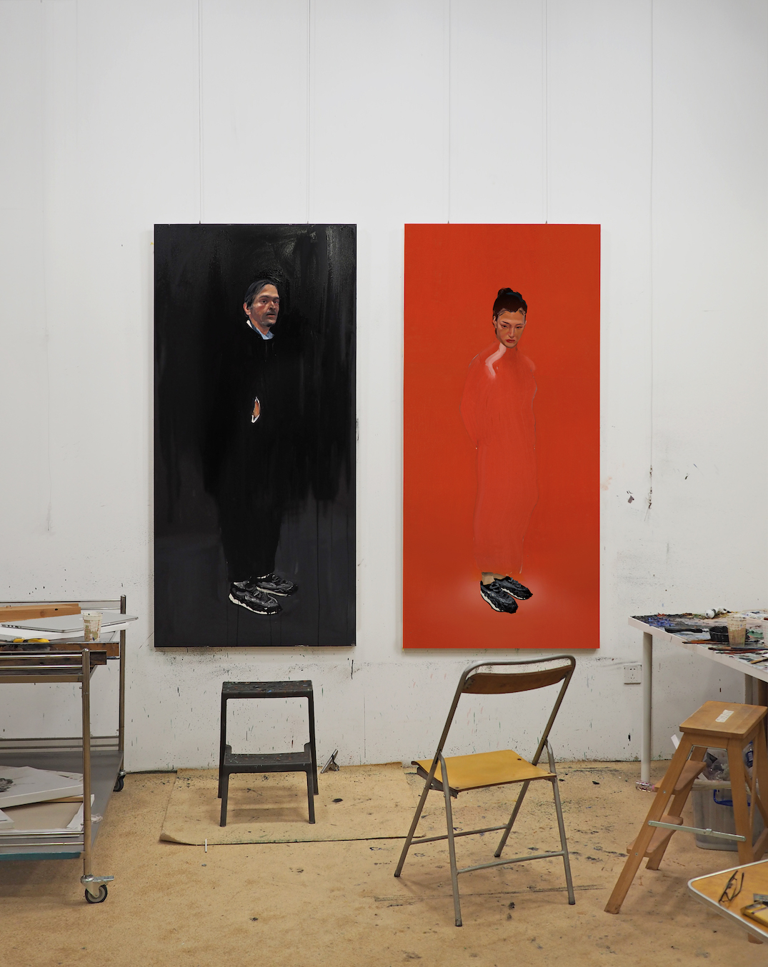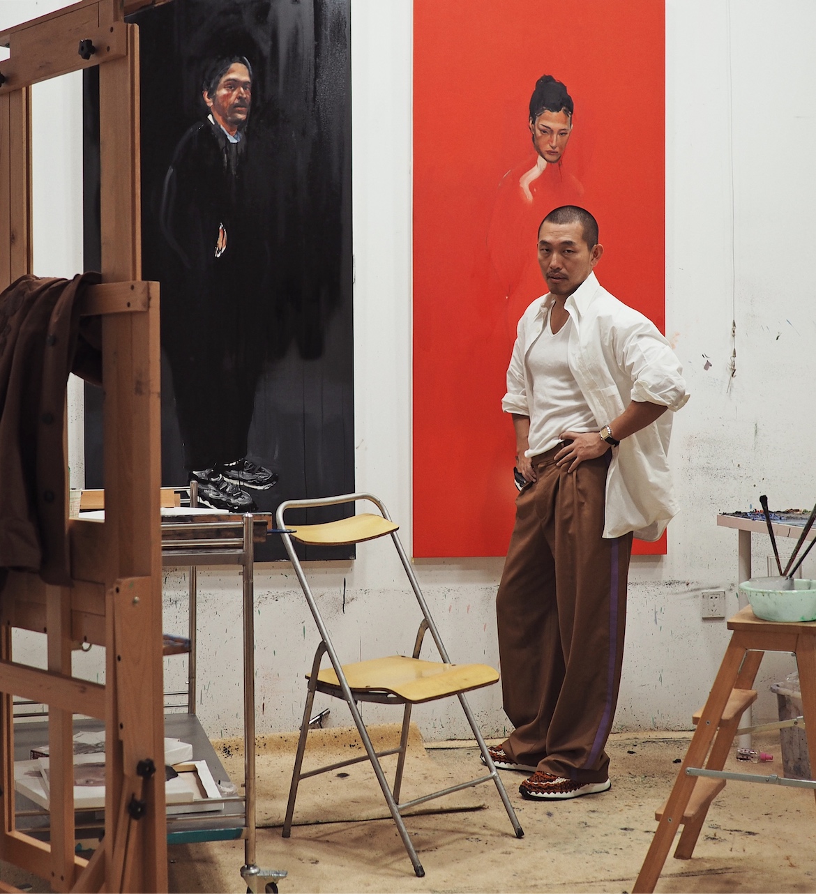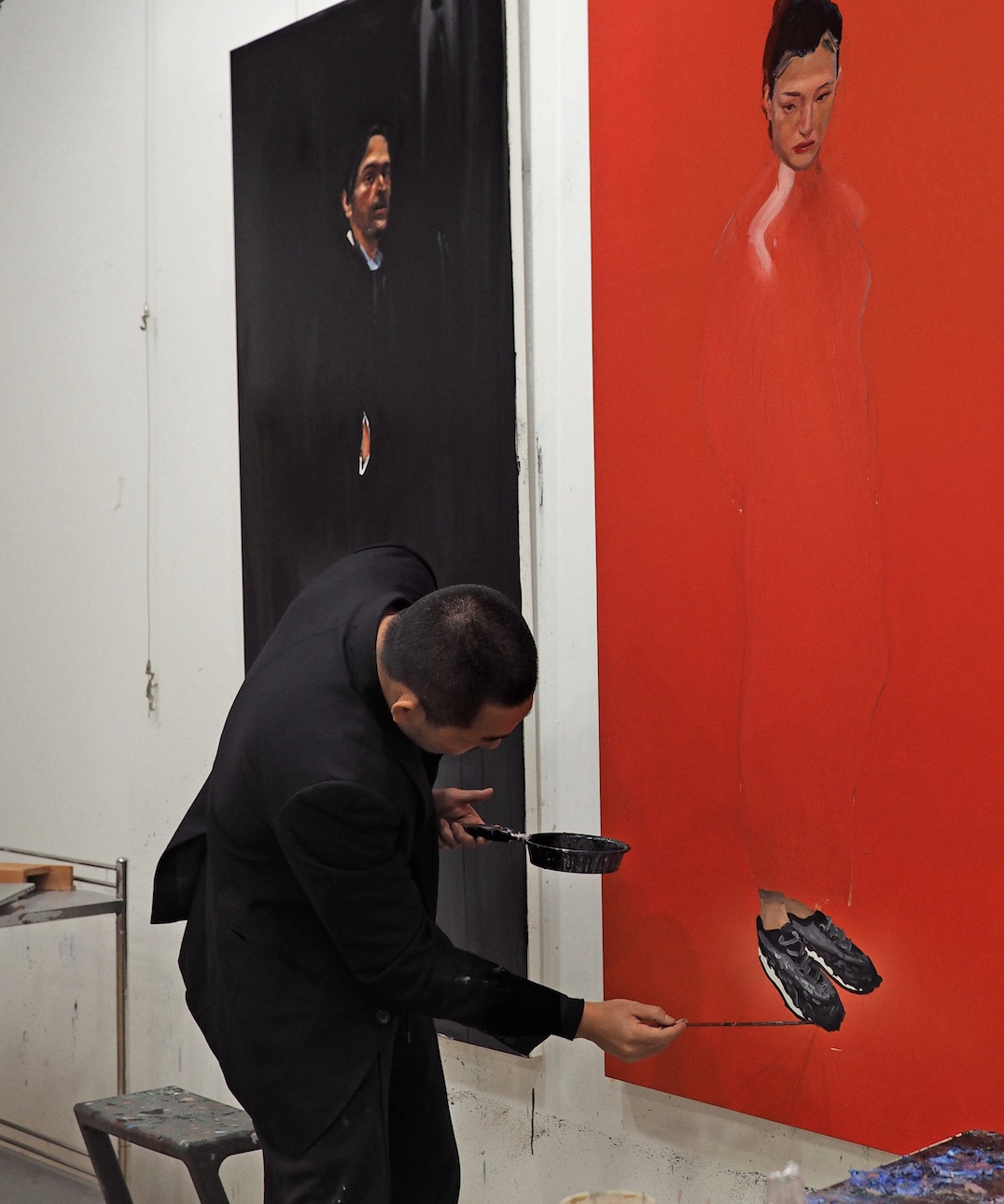 最後,還有來自中國上海的畫家張子豪,其繪製的《Untitled, 2021》特別選擇了以兩位穿上 Valentino Garavani Crochet 運動鞋的人物入畫。一男一女穿上的服裝融入背景的黑色及紅色調,將臉部及雙鞋特徵突顯出來。藝術家特別解釋了自己每次想起 Valentino 便會想起品牌的標誌性紅色,而黑色便成為了該色調的完美搭配。「這些面孔是我以前遇見過的人,我為他們挑選了適合他們氣質的服裝。由於這幅畫的大部分是單色的,你可以輕鬆地感覺到寧靜和活力,進而帶出鉤針運動鞋的舒適質感。我的角色沒有故事情節,主要內容是易於解釋的。活力是一種潮流,請不要強迫它,其餘的就會變得清楚。」