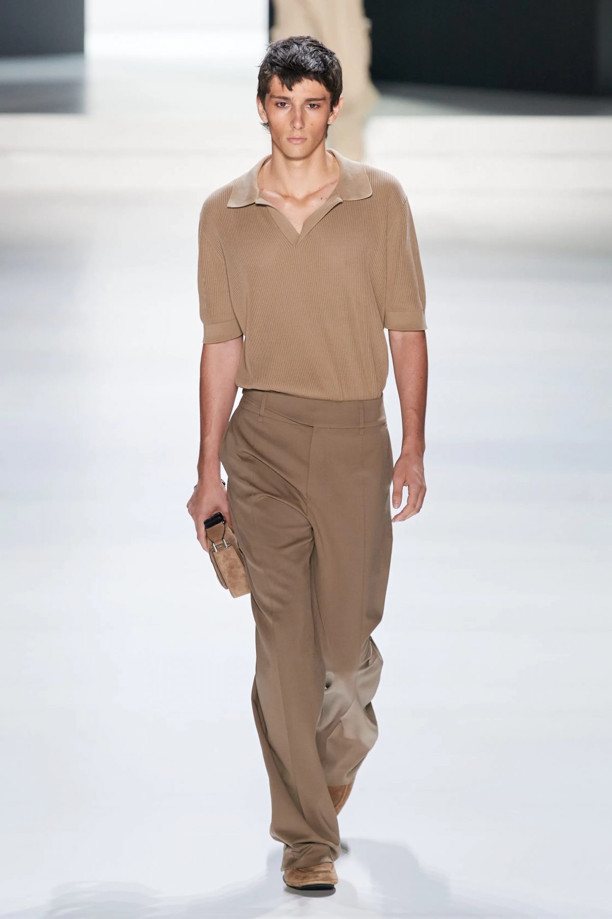 出門襯衫久了,偶爾也可以嘗試純色造型,特別是趕著出門,沒有時間思考怎樣配色,可以清一色穿搭,整體或會意外統一。好比台灣男神許光漢早前出席品牌活動時,整身穿著米色服裝,針織polo上衣搭配同色西褲,看上去特別乾淨利落,將重點放在臉上,更顯年輕帥氣。同類型的穿搭技巧在Dolce & Gabbana的春夏系列中也能看到,不過這次換成卡其色,暗沉一點的暖色調更低調簡約,下半身稍微更深一點,看上去更自然。