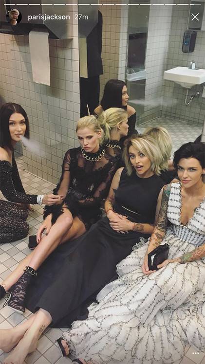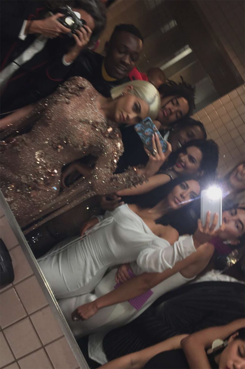 Bathroom selfie的源頭是2015年Kendall Jenner與一群模特兒在Met Gala的洗手間內拍了一張group selfie,她們搞怪又自然,讓對這個封閉派對充滿好奇的觀眾看到了華麗端莊的Met Gala 的另一面。