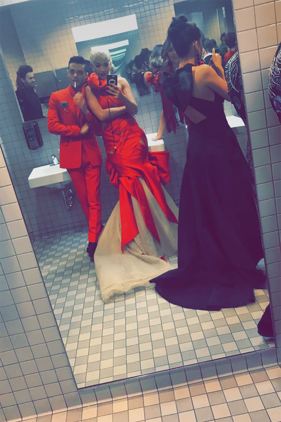 Bathroom selfie的源頭是2015年Kendall Jenner與一群模特兒在Met Gala的洗手間內拍了一張group selfie,她們搞怪又自然,讓對這個封閉派對充滿好奇的觀眾看到了華麗端莊的Met Gala 的另一面。