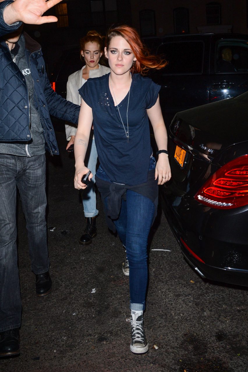 Kristen Stewart 以 T 恤搭牛仔褲造型出席2014年 Met Gala after-party,配合她一貫的休閒風格。