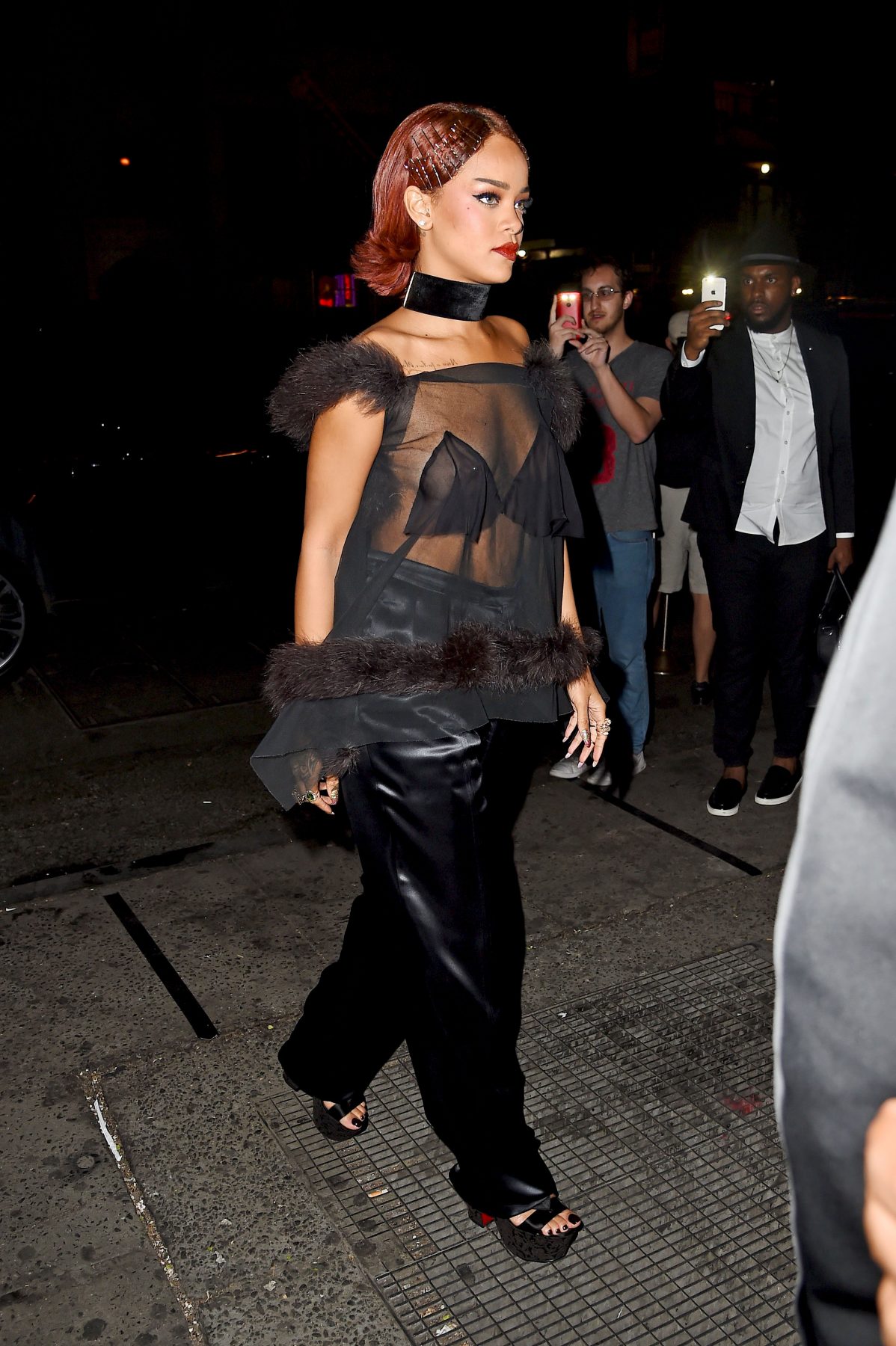 更換造型的意念雖然較新類,因為90年代貴賓們的作風相對低調,但現在總會有著名設計師的作品等待一眾名人們在宴會後換上。有史以來最搶眼的 after-party 造型基本上沿用輕鬆為本的哲學 —— 你必須能夠在其中舒暢地遊走,而最重要的是,要能夠盡情地舞動。忘掉浮誇的禮服,換上更可取的迷你裙和印花褲子,由其是當你要把 Met Gala 的主題延續至凌晨時分。貴賓可以來一個180度的轉變,如2010年《花邊教主》(Gossip Girl)時代的 Blake Lively 從 Marchesa 荷葉邊晚裝的紅地毯造型,換上 T 恤和皮質半截裙的搭配參與 Standard Hotel 的派對;抑或稍微改變風格,就像2015年 Lady Gaga 的 Balenciaga by Alexander Wang 披風內搭水晶點綴的連身褲;又或者挑戰大膽少布的造型,例如2014年 Rihanna 令人瞠目的露背晚裝,這些都是 Met Gala after-party 造型的經典例子,因為對於具冒險精神的名人來說,after-party 的唯一規則就是 “go boldly or go home”。