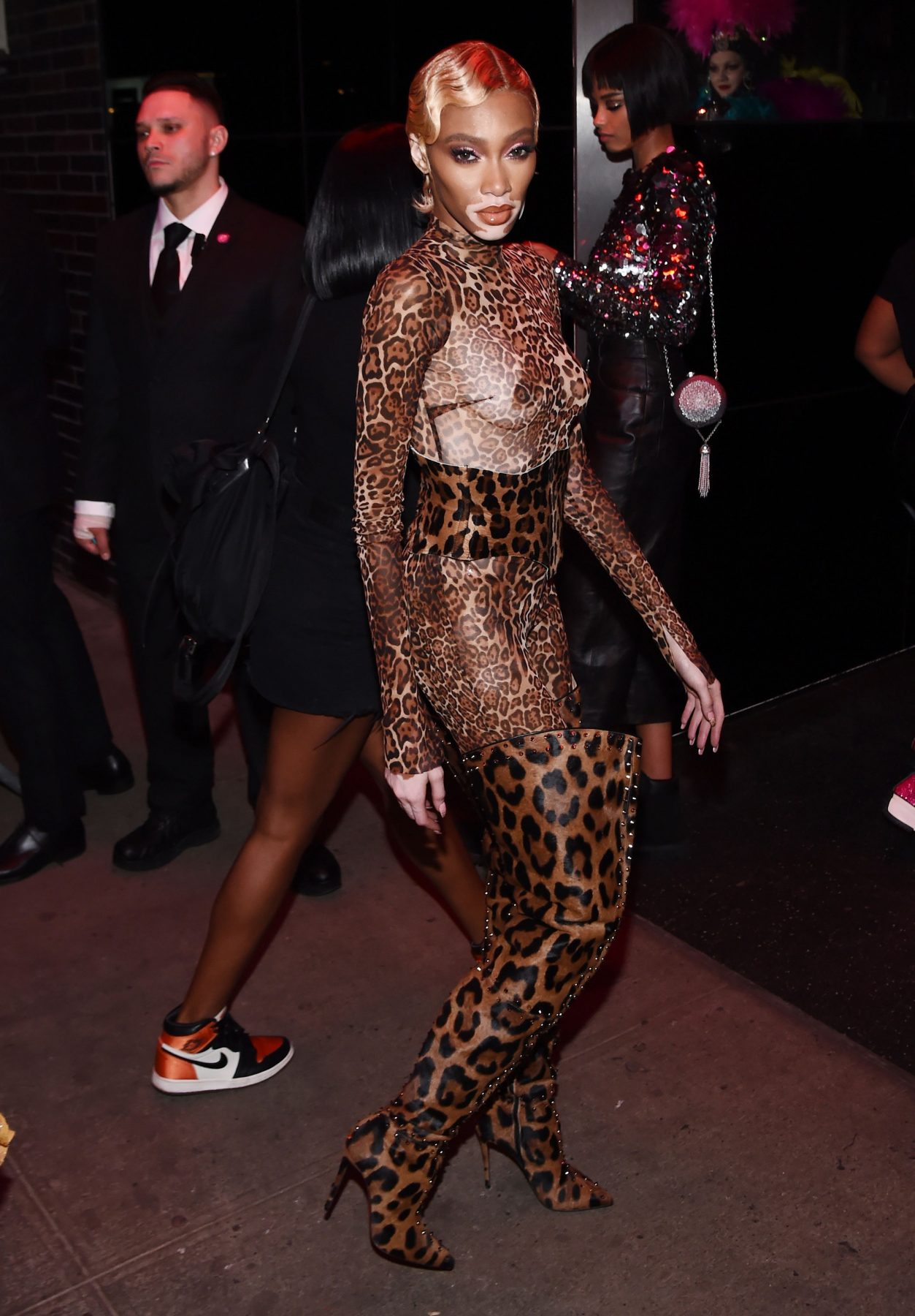 Winnie Harlow 以 Laquan Smith 的透視連身褲造型出席2019年 Met Gala After-party。