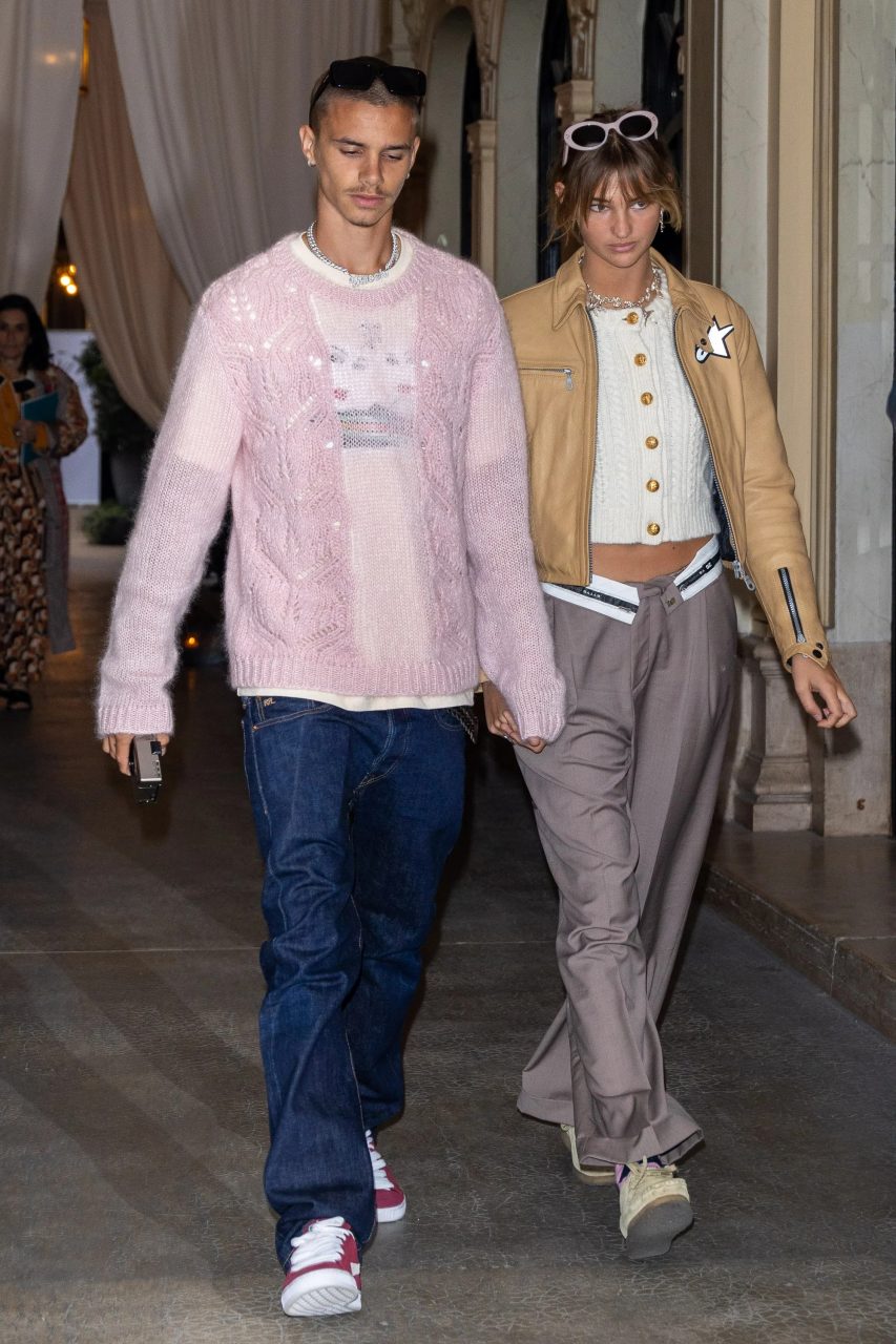 不論是在倫敦 Tate Modern 美術館舉辦的品牌狂歡活動中,那一身從頭到腳的 Prada 造型,還是在森麻實府滑冰時簡單地穿著寬鬆的牛仔褲和休閒外套——這對情侶是當下超酷 Gen-Z 風格的縮影。 我們更不要忘記,他們在紐約市旅行時那條 Palace 褲子。