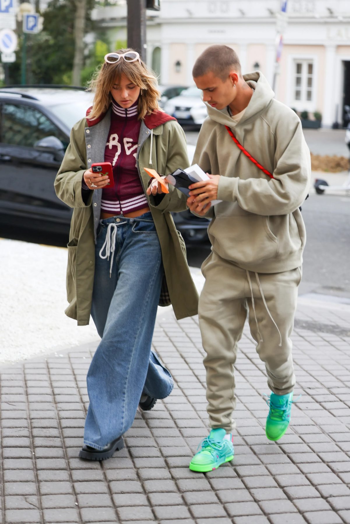 不論是在倫敦 Tate Modern 美術館舉辦的品牌狂歡活動中,那一身從頭到腳的 Prada 造型,還是在森麻實府滑冰時簡單地穿著寬鬆的牛仔褲和休閒外套——這對情侶是當下超酷 Gen-Z 風格的縮影。 我們更不要忘記,他們在紐約市旅行時那條 Palace 褲子。