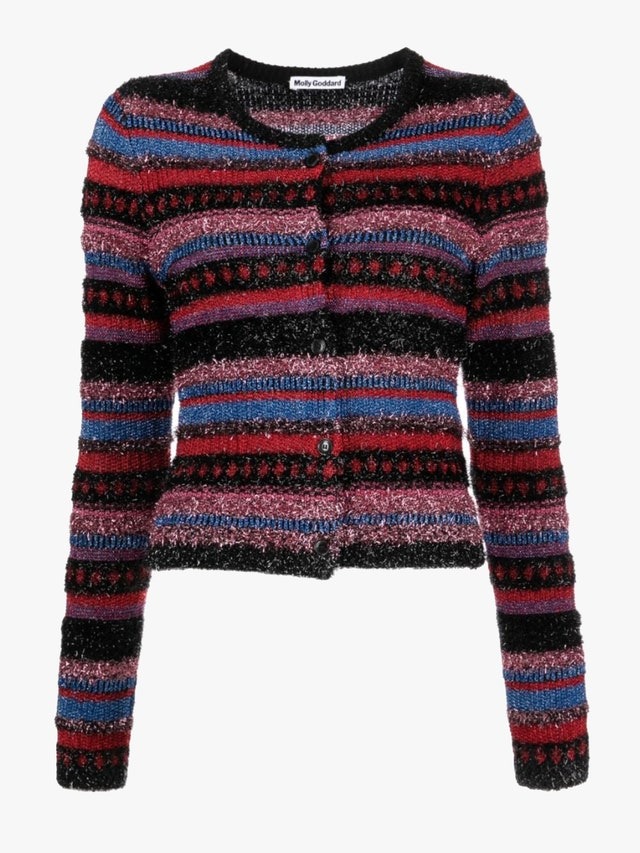在造型方面,我們建議避免任何過於「少女」的風格。你可以在低腰裙外穿上一件寬鬆外套,並搭配一雙休閒運動鞋或亮面 Loafers,營造出一種「off-duty It girl」的氛圍。有質感的針織外套也是一種毫不費力的魅力之選——Molly Goddard 的 Joanna 條紋針織衫正是你所需要的最佳單品。