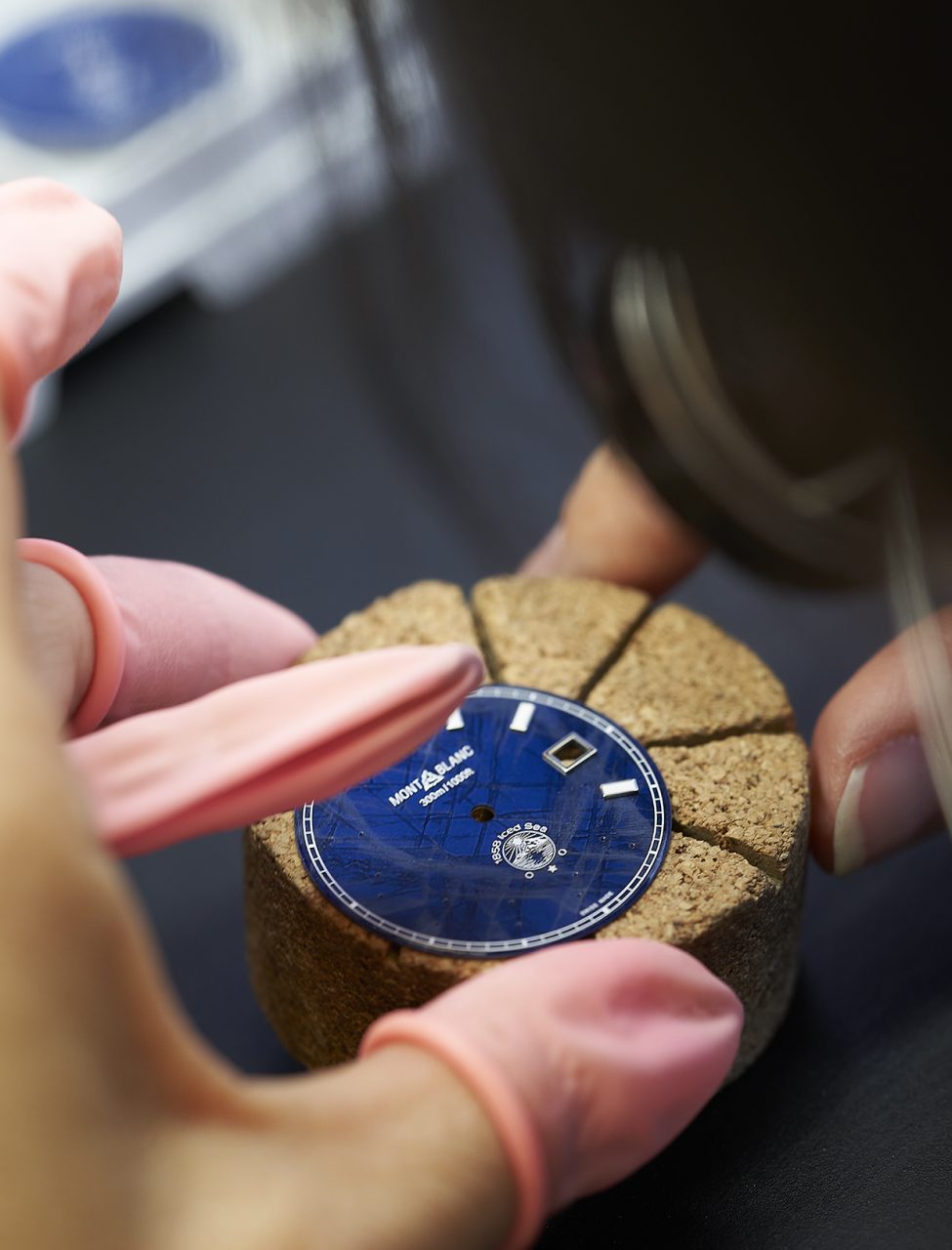 要將冰川的景觀藏於腕錶中,甚至轉化到錶面之上,絕非易事!但 Montblanc 憑著匠心精神及工匠的靈巧手腕,多次試驗後,成功透過名為 “gratté boisé”,一種幾乎被遺忘的祖傳的技術,全人手刻劃冰川形態,並經過多重精細的工序,把像真度極高的冰川形態呈現在錶面上。而在錶面上亦刻有品牌的白朗山標誌,一目了然的設計。