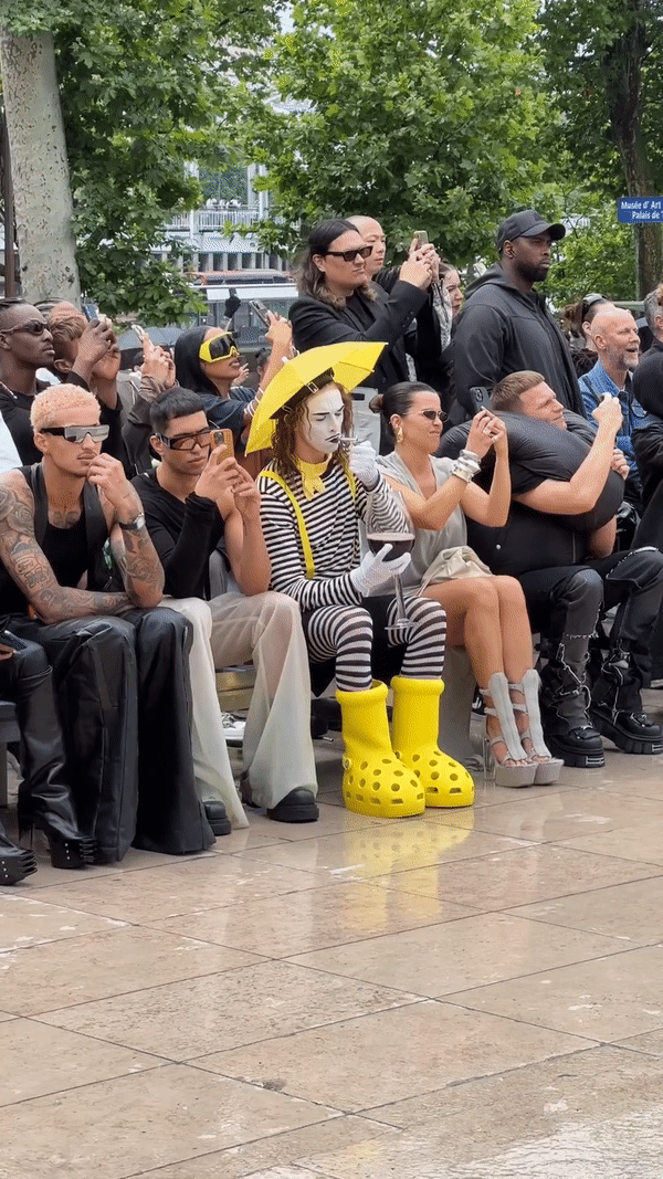 這雙芝士鞋是透過愛沙尼亞的說唱歌手 Tommy CashRick Owens 2024 春夏男裝系列時裝展上發佈;Tommy 裝扮成一位穿着黑白條紋衣服的小丑,頭上戴着迷你雨傘帽,而腳上便是穿着這雙最新的黃色話題靴子。他坐在觀眾席的首行位置,做着跳舞、喝紅酒、抽菸等動作吸引着其他人目光;而在上一季的 Y/PROJECT 時裝展上,這位歌手便穿着成連同床與棉被的睡衣出席,期間更閉目養神、敷面膜等,先不論行為正確與否,此舉確實成功引起網路話題。