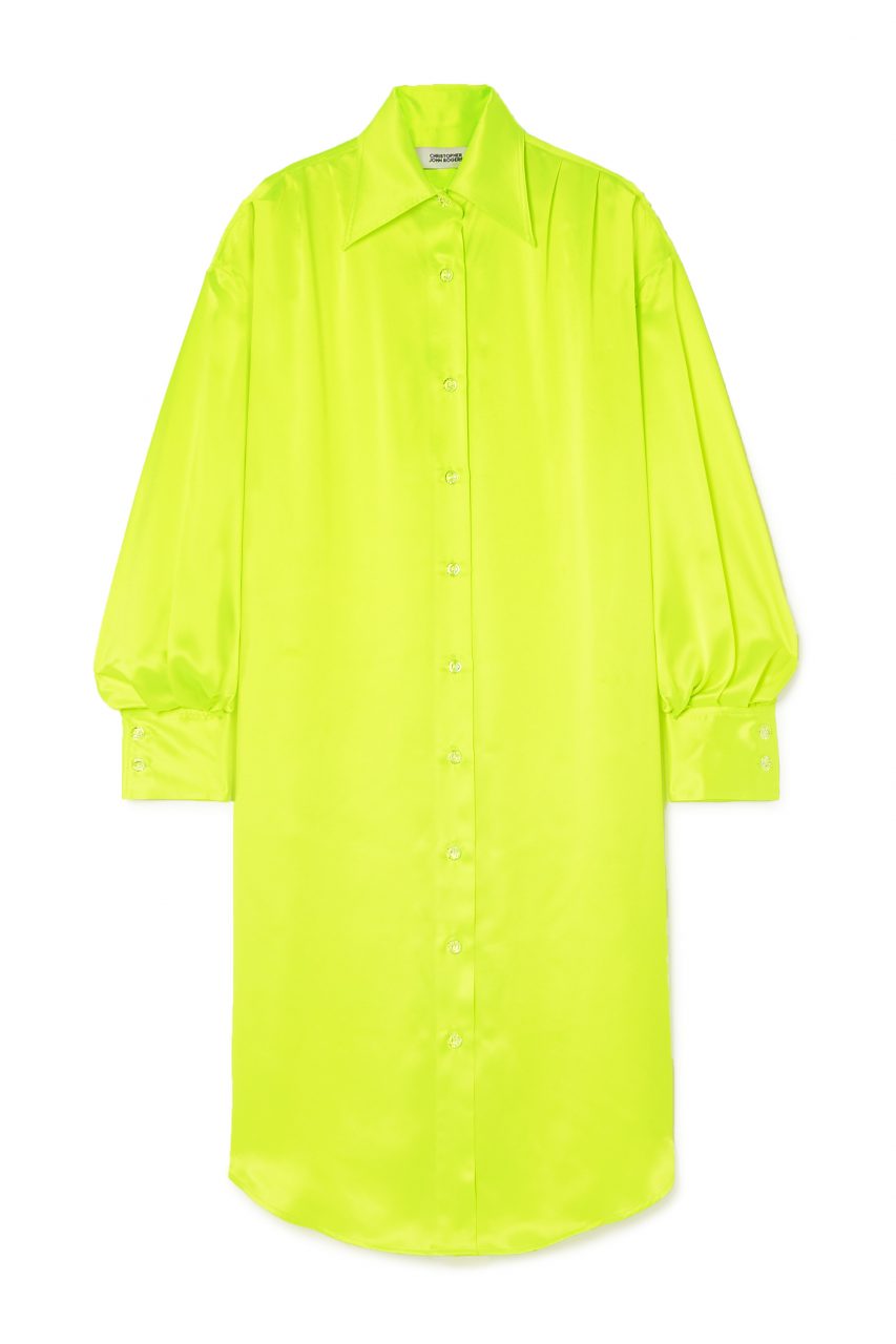 CHRISTOPHER JOHN ROGERS Oversized crystal-embellished neon silk-charmeuse shirt dress $13,532 from Net-A-Porter