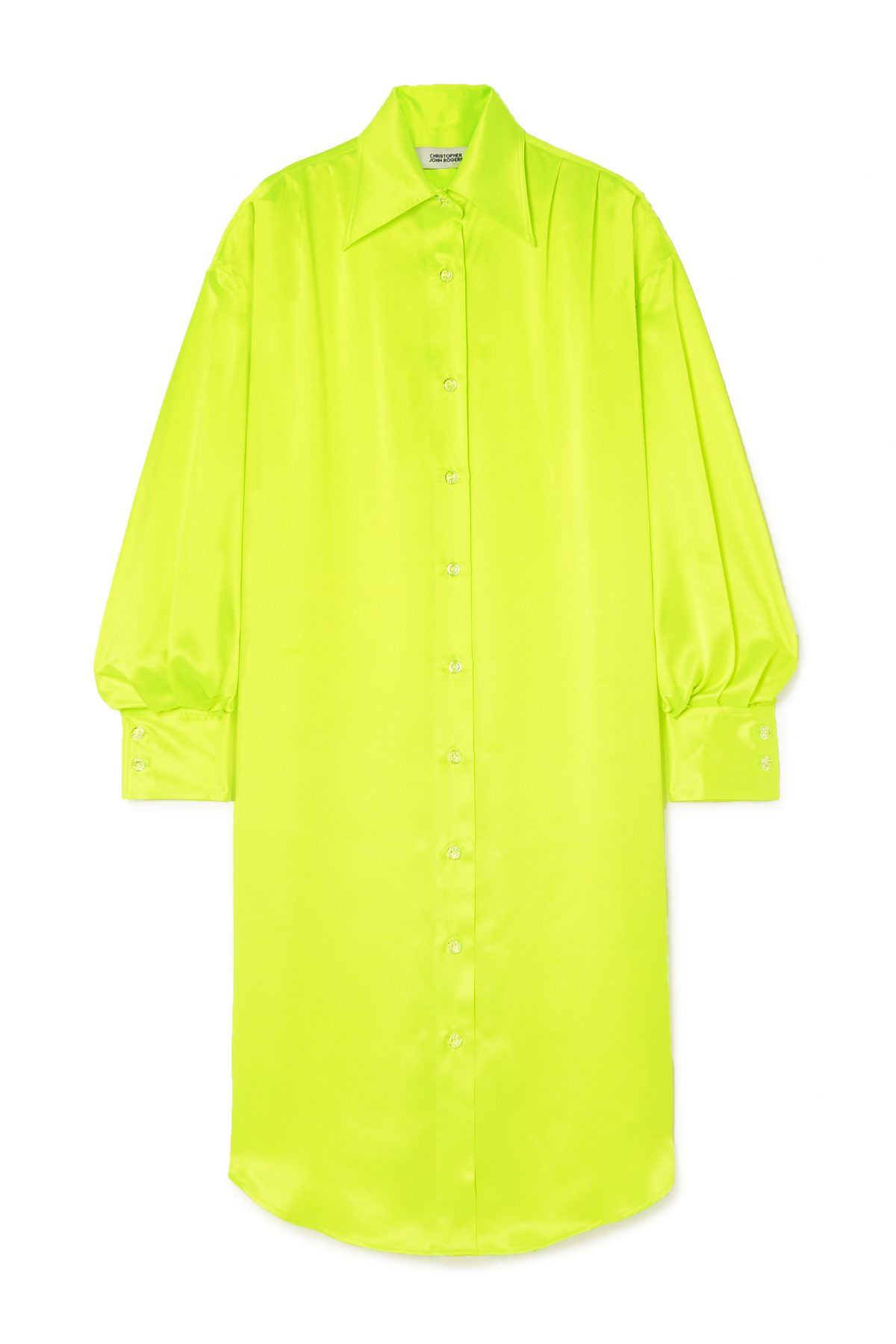CHRISTOPHER JOHN ROGERS Oversized crystal-embellished neon silk-charmeuse shirt dress $13,532 from Net-A-Porter