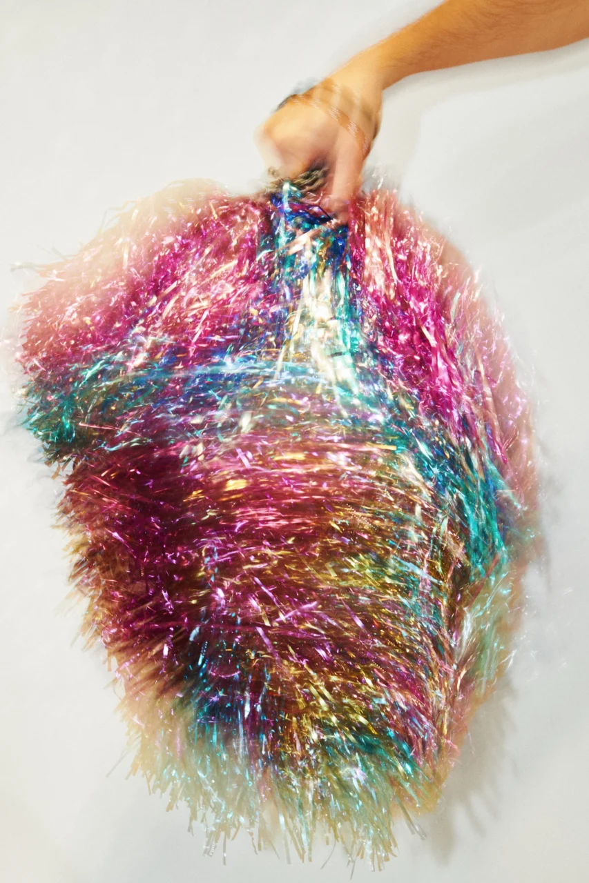 這並非意味著 Aburn 放棄品牌的「奇幻」元素。工作室裏散落著亮片、啦啦球與派對用具的廢料重製的新物件。Aburn 表示:「剝奪品牌核心的樂趣與創意光芒,將是錯誤之舉。有多少品牌能讓你盡情運用這些元素?因此,我如今正樂在其中。」