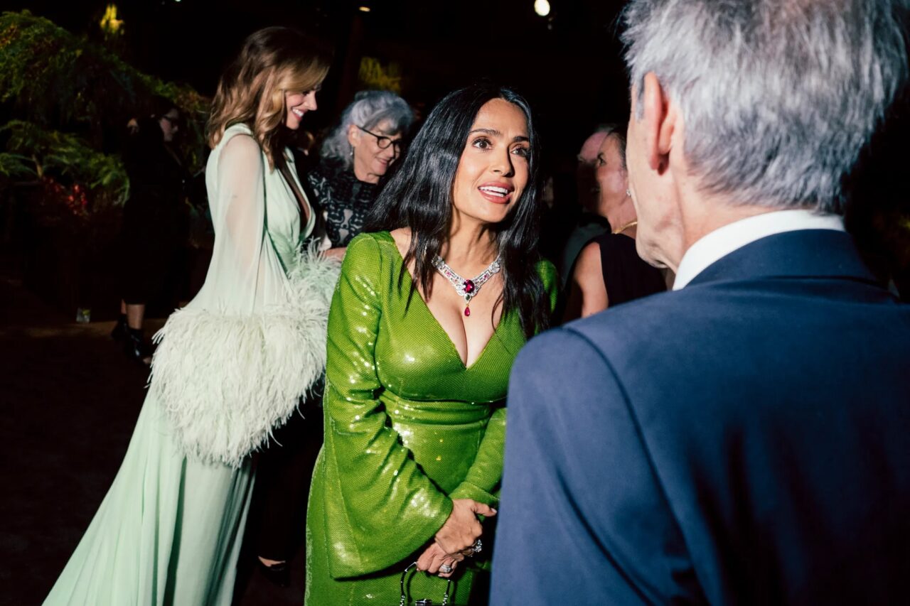 Salma Hayek Pinault被發現正在與穿著金屬禮服的Tessa Thompson交談,後者的背部開口深邃。「我覺得自己像是浸在液態銀中!它非常舒適,前面是商務風,後面是派對風呢,」她高興地說。Tessa Thompson出席是為了向Ryan Coogler致敬,他在《洛奇外傳:王者之後》(Creed)中與Michael B. Jordan同台演出。「他是一位非凡的電影製作人。他關心社區,想要擴展我們對黑人身份的可能性,」她讚美道。「他是最富有想像力的人,真的是一個堅實、可愛、關懷、富有同情心的人。」