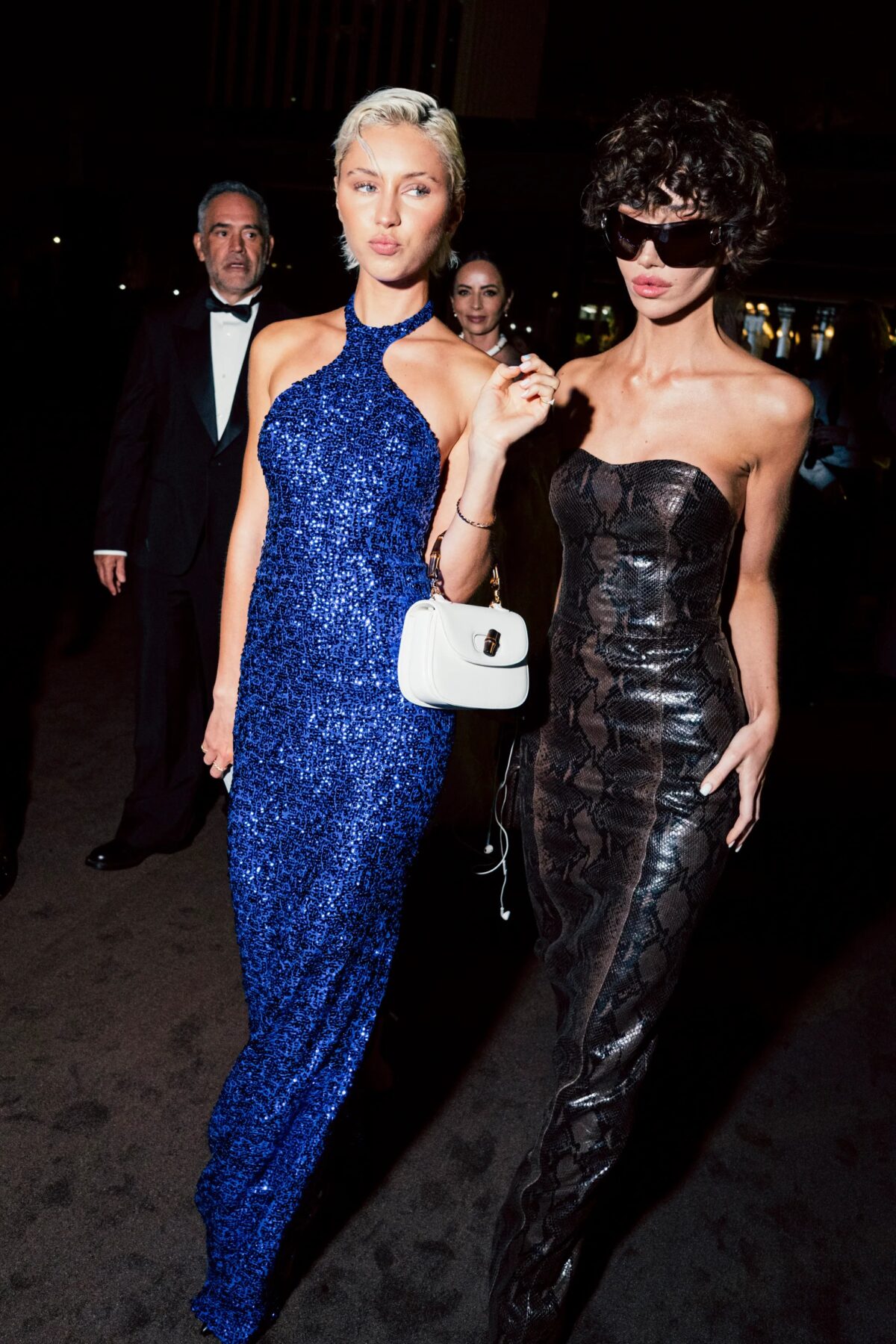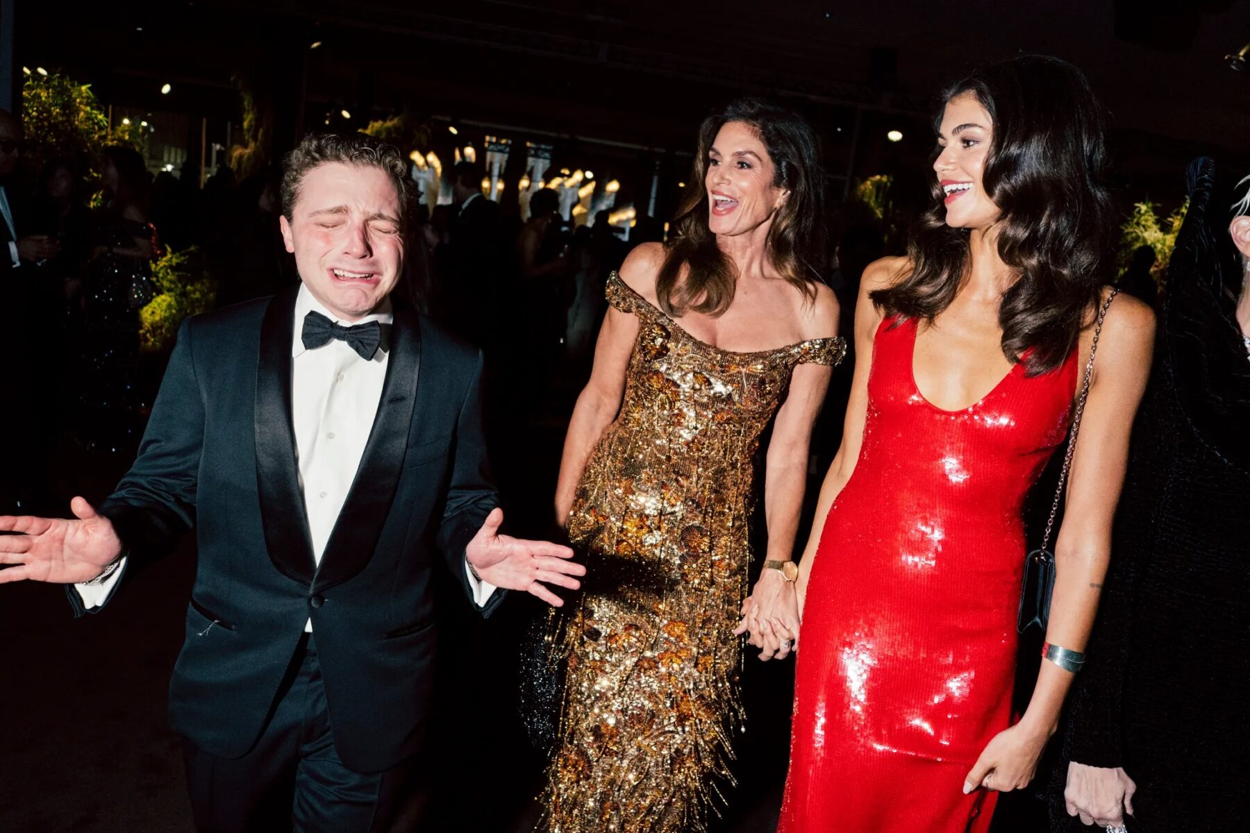 按照慣例,Gucci再次成為冠名贊助商,一眾名人紛紛亮相紅地毯,展示了Demna的全新作品,這位設計師當晚也一同出席。Demna的設計深受不同年齡層女性的喜愛,Cindy Crawford和Kaia Gerber兩人分別穿著露肩刺繡金飾和櫻桃紅亮片禮服,展現其跨世代魅力。「Kaia邀請我今晚跟她一起來,我會為了和女兒共度一晚做任何事,」Cindy Crawford笑着告訴《VOGUE》,她的超模女兒在她身旁笑容燦爛。我們甚至一起準備,試着協調我們的裙子。」Kaia Gerber附和道:「和我媽媽一起準備真是好玩,她讓我不遲到······她是準時的人!」正如Cindy Crawford所說,她的裙子試穿只花了10分鐘,她在Gucci總部「進進出出」。