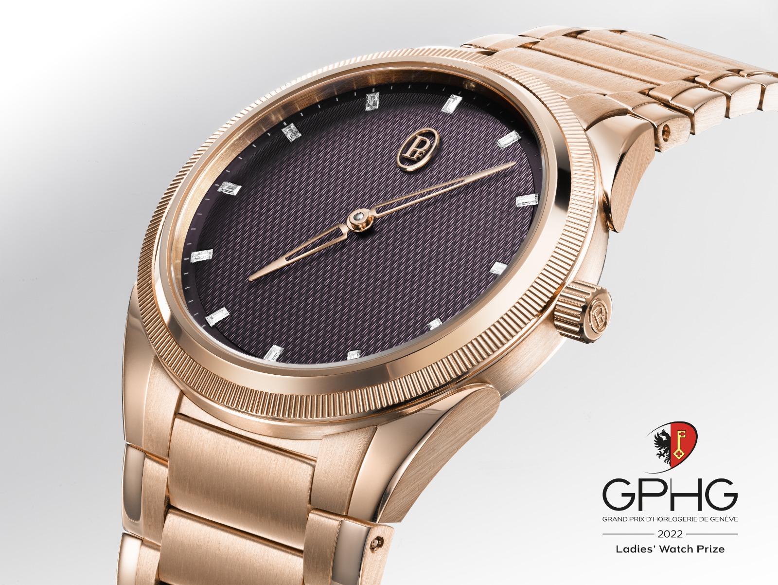 其 Tonda PF 寶石紅玫瑰金腕錶於 GPHG 中榮獲 The awards of Ladies Watch Prize