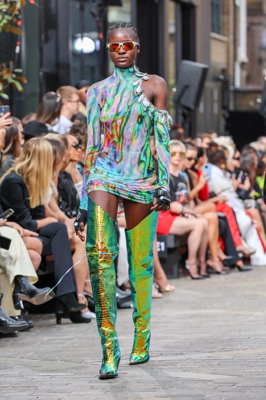 在 2023 年春夏,這款靴子將無處不在。因為這種過膝長靴在許多品牌的天橋上大放異彩。從 Junya Watanabe 到 Alaïa ,甚至是 Ottolinger 和 Paco Rabanne,飾有鏈條、窩釘、水鑽、珍珠和更多裝飾物的元素,裝飾了春夏時裝展的靴款。