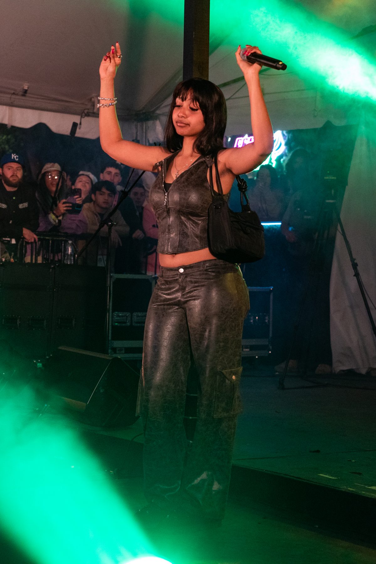 手袋雖然成為人們日常出行必備單品之一,但它卻不像衣服配飾般「全天候」可以使用,而歌手在舞台表演掯着手袋,以平常眼光來看的確不太尋常——但在台上背着 shoulder bag 腋下包的造型早已成為了 PinkPantheress 的標誌性風格,至於 Ice Spice 亦同樣以經常隨身攜帶手袋而聞名。