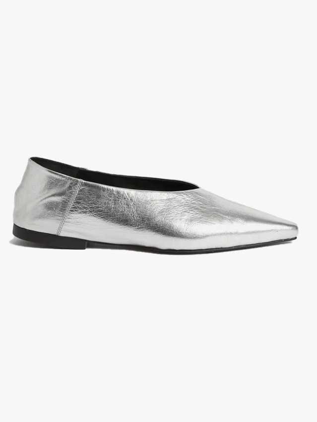 這並不僅是我的一面之詞:從 Gabriela Hearst 的銀色連身長裙,到 Fashion East 上 Johanna Parv 的單色運動造型,尖頭鞋都不斷出現在各大時尚展上。就連時尚寵兒 Gigi Hadid 也都加入到這一行列——她身穿黑色皮革外套與西褲,搭配黑色尖頭平地鞋;這絕對是最好的半正式休閒造型。