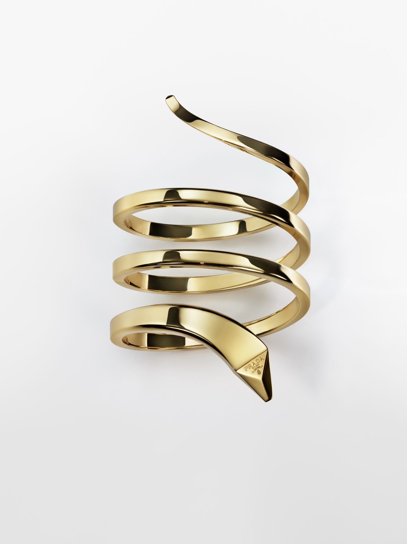 可持續發展成為時尚界的顯學,但偏偏應用在高級珠寶世界之中仍屬罕見。一向愛反傳統的 Prada,亦選擇突破高級珠寶的界限,將可持續發展的價值方針植根珠寶之中,選用真正可持續的回收黃金打造了是次 Eternal Gold 系列,並透過一脈相承的可持續原則,重新演繹了高級珠寶世代承傳、歷久彌新的重要理念。