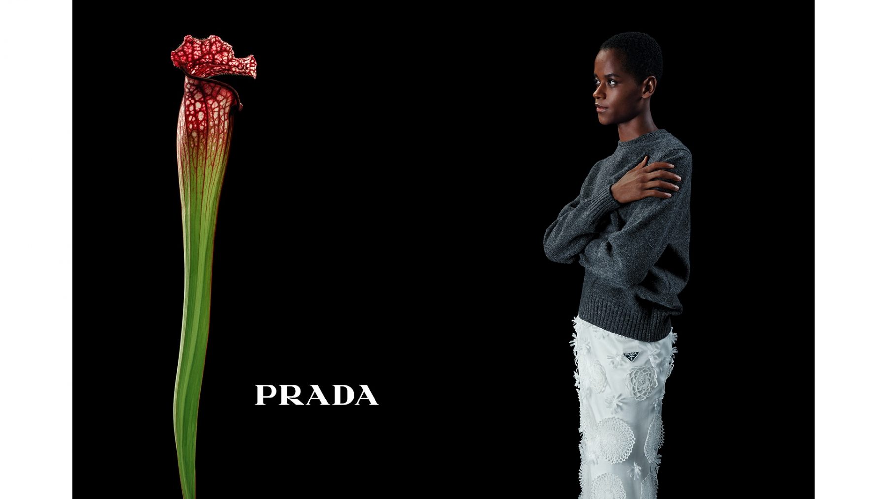 Prada以「Beauty, care, love.(美麗,關懷,愛。)」作為2023秋冬系列廣告的創作靈感。花朵既是圖騰,也是溫柔與愛意的象徵。Prada通過花朵這一隱喻將其賦予生命力,並將其重新想象為人類的大小,這亦暗示了與Benedict Cumberbatch,Hunter Schafer,Kodi Smit-McPhee,Letitia Wright及Li Xian這五位明星演員互動的超凡情感。