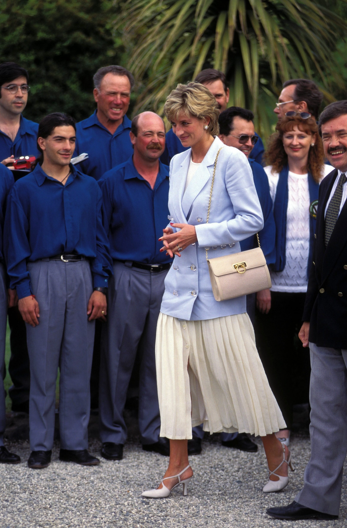 Salvatore Ferragamo 於 1990 年為戴安娜量身訂製了一款手袋,這款長包配有 Ferragamo 標誌性的五金配件,深受戴安娜王妃的喜愛,她甚至還另外訂購了多種顏色。之後品牌的設計師還為她設計了 Vera 蝴蝶結手提包,戴安娜還用她搭配了最經典的「復仇之裙」。