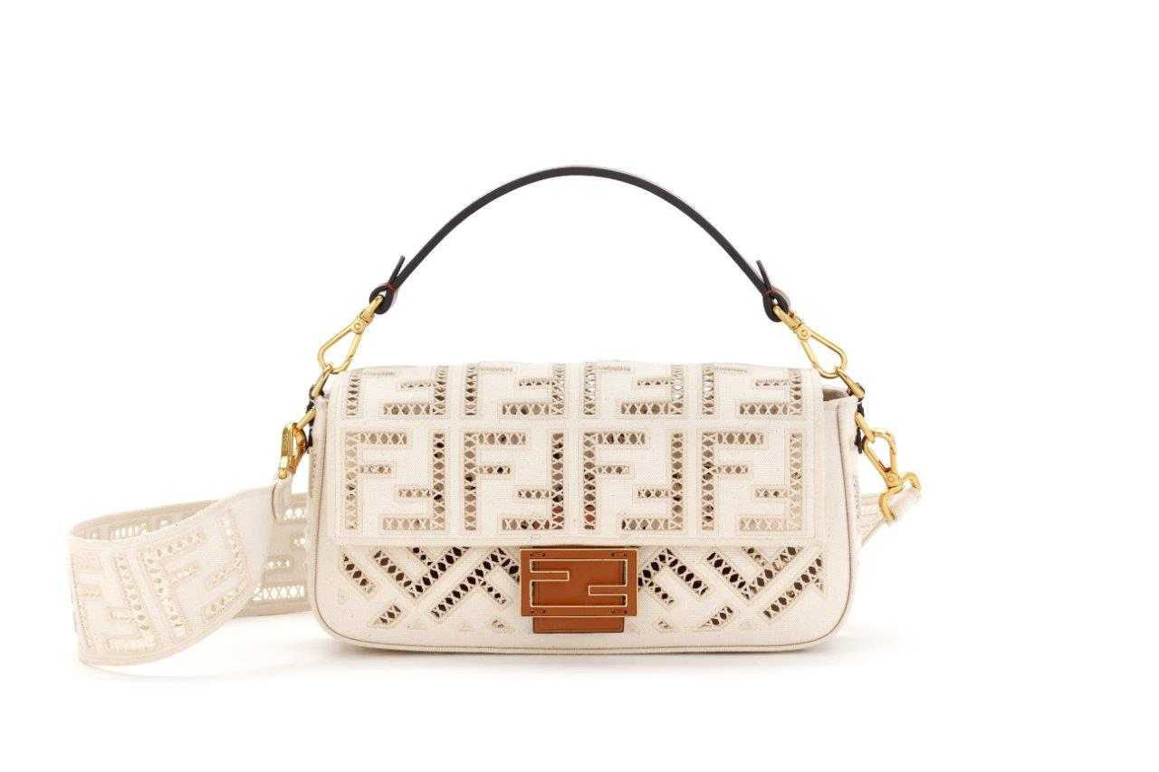 FENDI White FF Logo Embroidery Regular Baguette Bag HKD $26,800