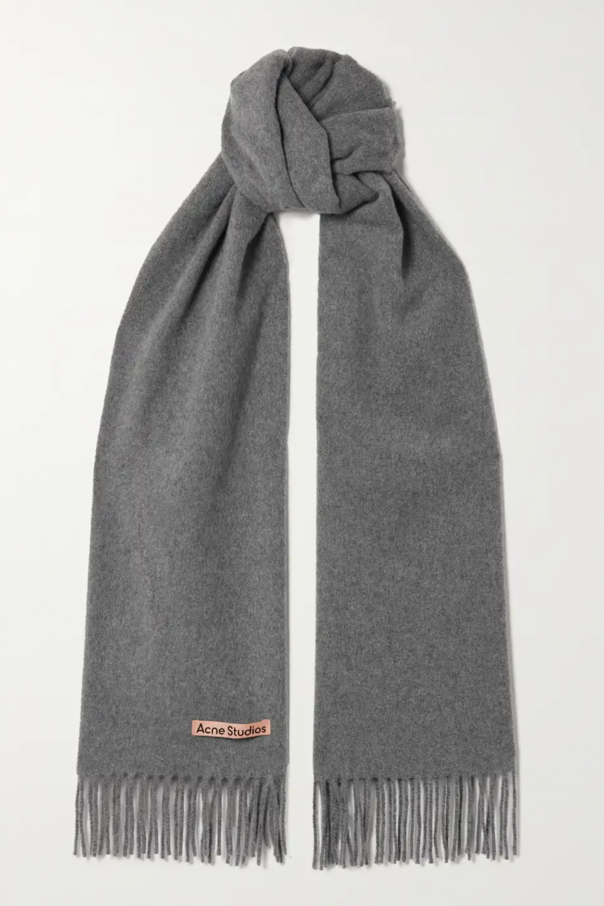 屬於中性色系的灰色可以說是平平無奇,但也正因如此不會與任何造型配搭出突兀感。較薄的羊絨灰色頸巾可以用最簡單的單圈式圍法或者更保暖的環扣式,都不會出錯。