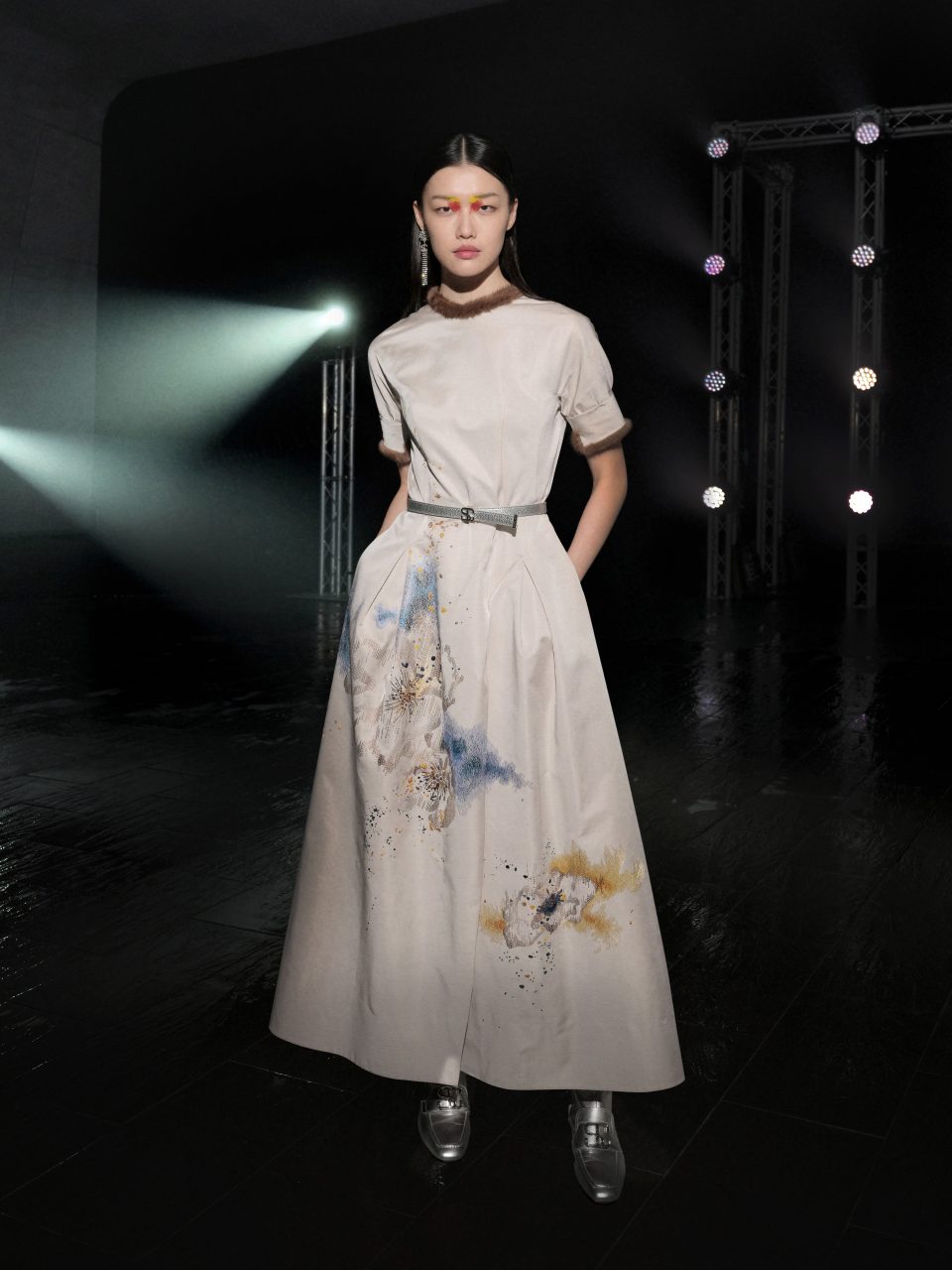 假若你有留意過 Shiatzy Chen 的設計,就不難發現王陳彩霞女士心底裡是個浪漫細膩的人:去年以馬戲團主題延伸至冒險精神,又以織間為題,帶領大家往返過去、現在與未來,而2022 秋冬系列以「光塵」作主題,從黑暗中劃開的火柴,散發出奪目的光芒,在光影中捕捉到塵粒的存在,引發探究著古文中「和其光,同其塵」一言,光和塵是同時的存在,亦是同等的重要,正如每個人的過去及未來一樣,也是引領人走向璀璨光明的歷程。品牌更細心地以 “GENESIS” 作英文主題,含創世紀和萬物之始的意思,從混沌中誕生,乘座着光源向心中的烏托邦出發,為系列增添張力。