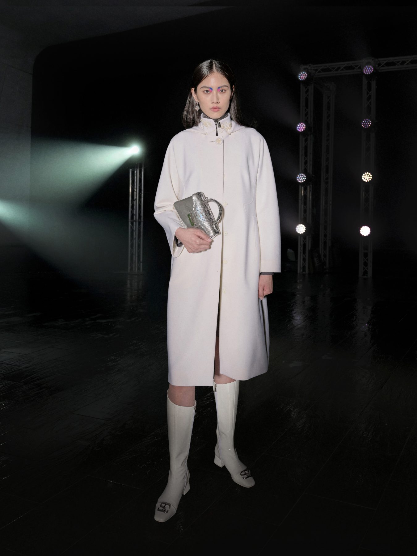 假若你有留意過 Shiatzy Chen 的設計,就不難發現王陳彩霞女士心底裡是個浪漫細膩的人:去年以馬戲團主題延伸至冒險精神,又以織間為題,帶領大家往返過去、現在與未來,而2022 秋冬系列以「光塵」作主題,從黑暗中劃開的火柴,散發出奪目的光芒,在光影中捕捉到塵粒的存在,引發探究著古文中「和其光,同其塵」一言,光和塵是同時的存在,亦是同等的重要,正如每個人的過去及未來一樣,也是引領人走向璀璨光明的歷程。品牌更細心地以 “GENESIS” 作英文主題,含創世紀和萬物之始的意思,從混沌中誕生,乘座着光源向心中的烏托邦出發,為系列增添張力。