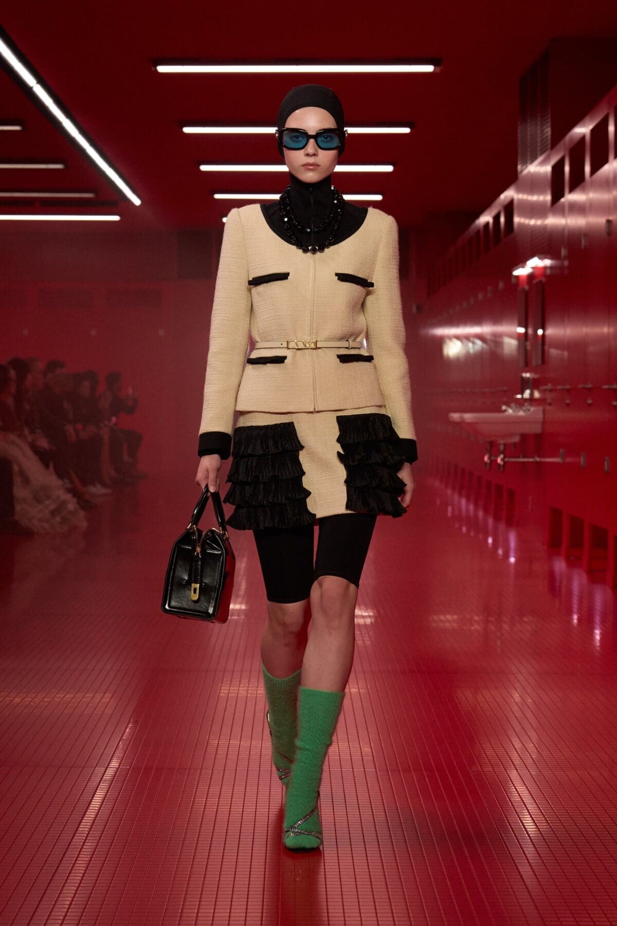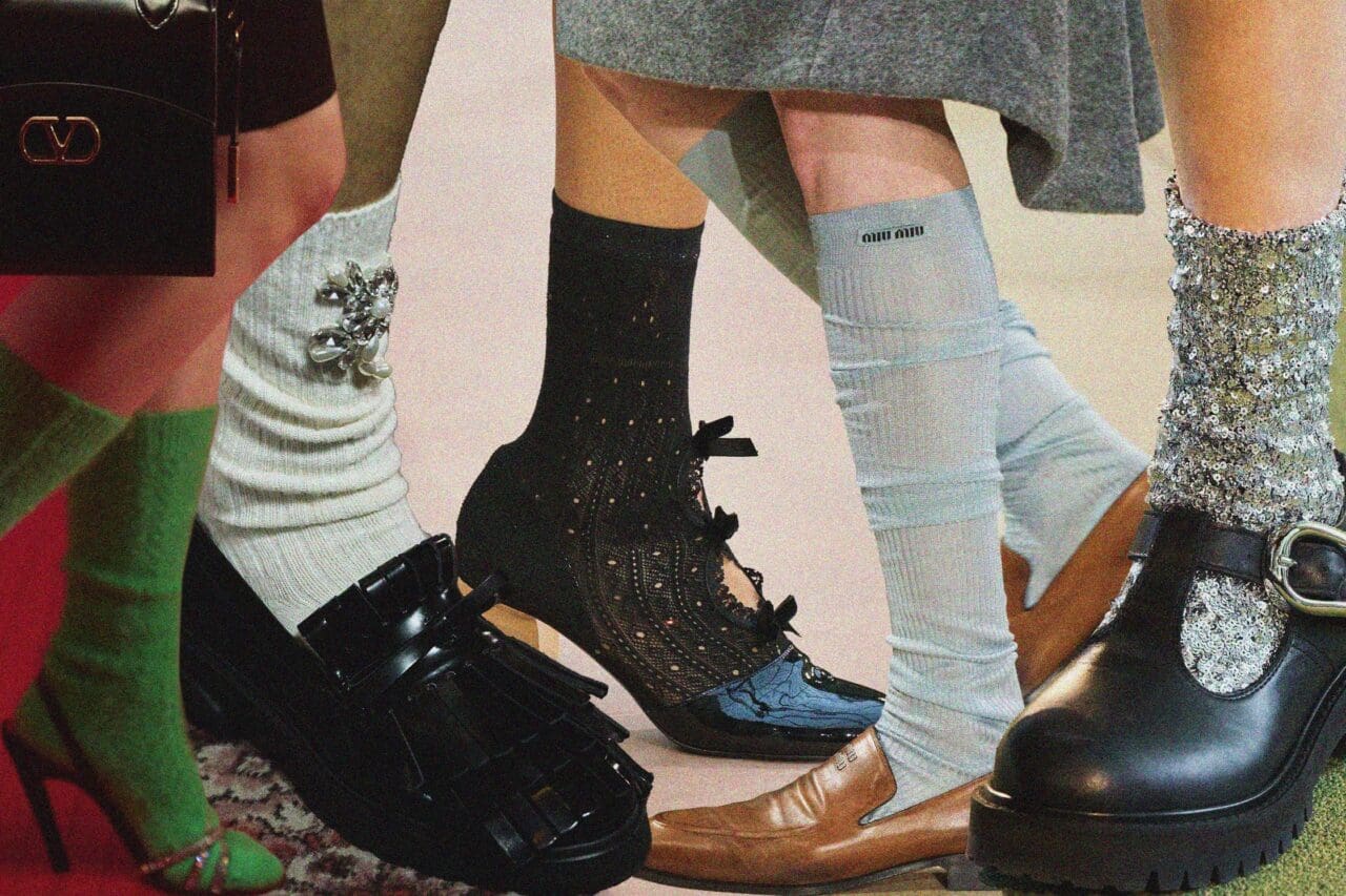 當然,襪子可能會被說成只是用來保暖雙腳的功用性配飾。但在本季,設計師們展示了襪子也可以是大膽(而且有趣!)的點綴。在 Rabanne 時裝系列中,厚實的平底鞋與銀色亮片襪子並列,讓整套造型充滿派對氣氛;在 Valentino,Alessandro Michele 將精緻的細跟高跟鞋搭配鮮綠與鮮紅的襪子——突然間讓鞋子不再那麼豔麗,而多了些奇思妙想。事實證明,選對襪子就能改變整個穿搭的氣氛與活力。