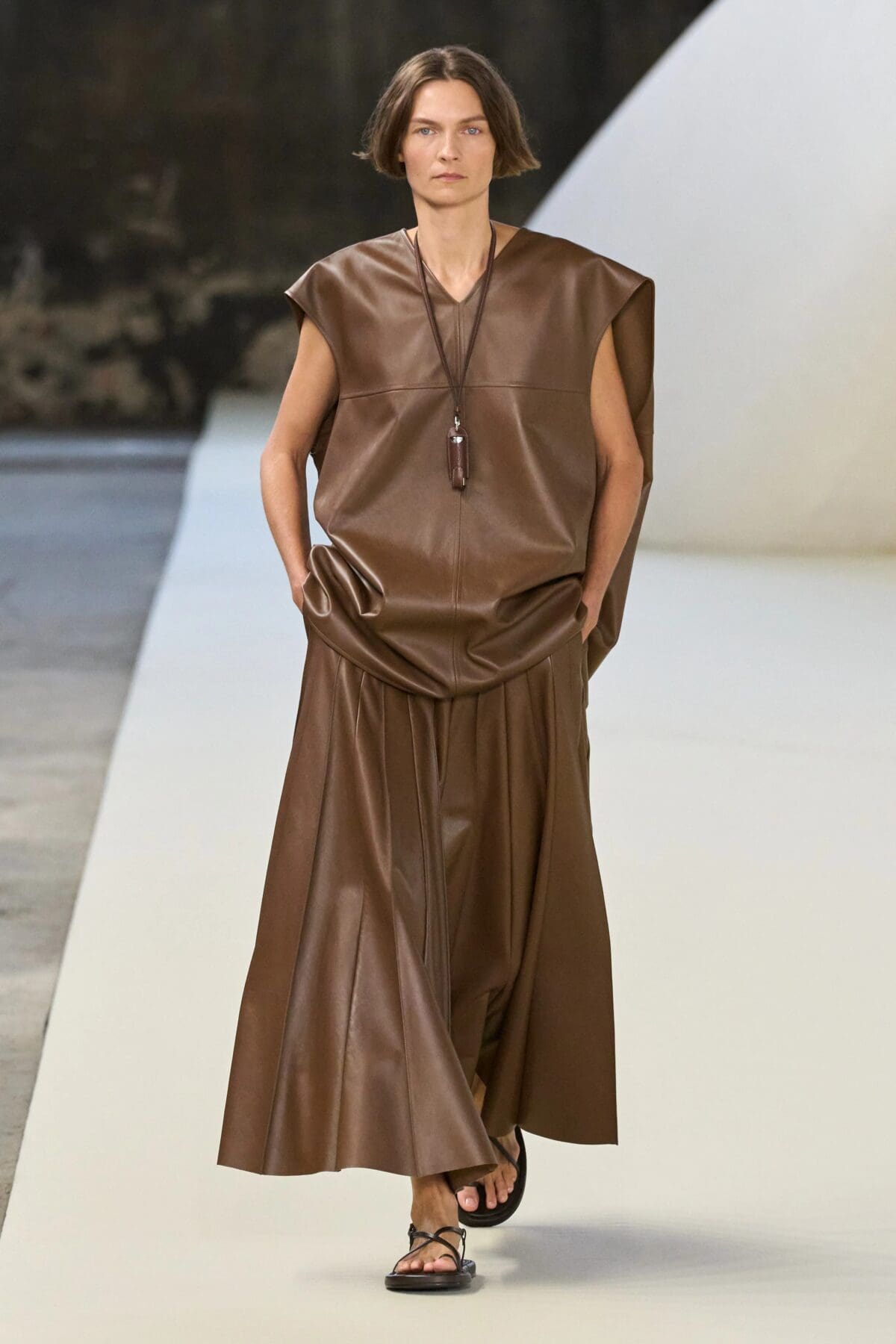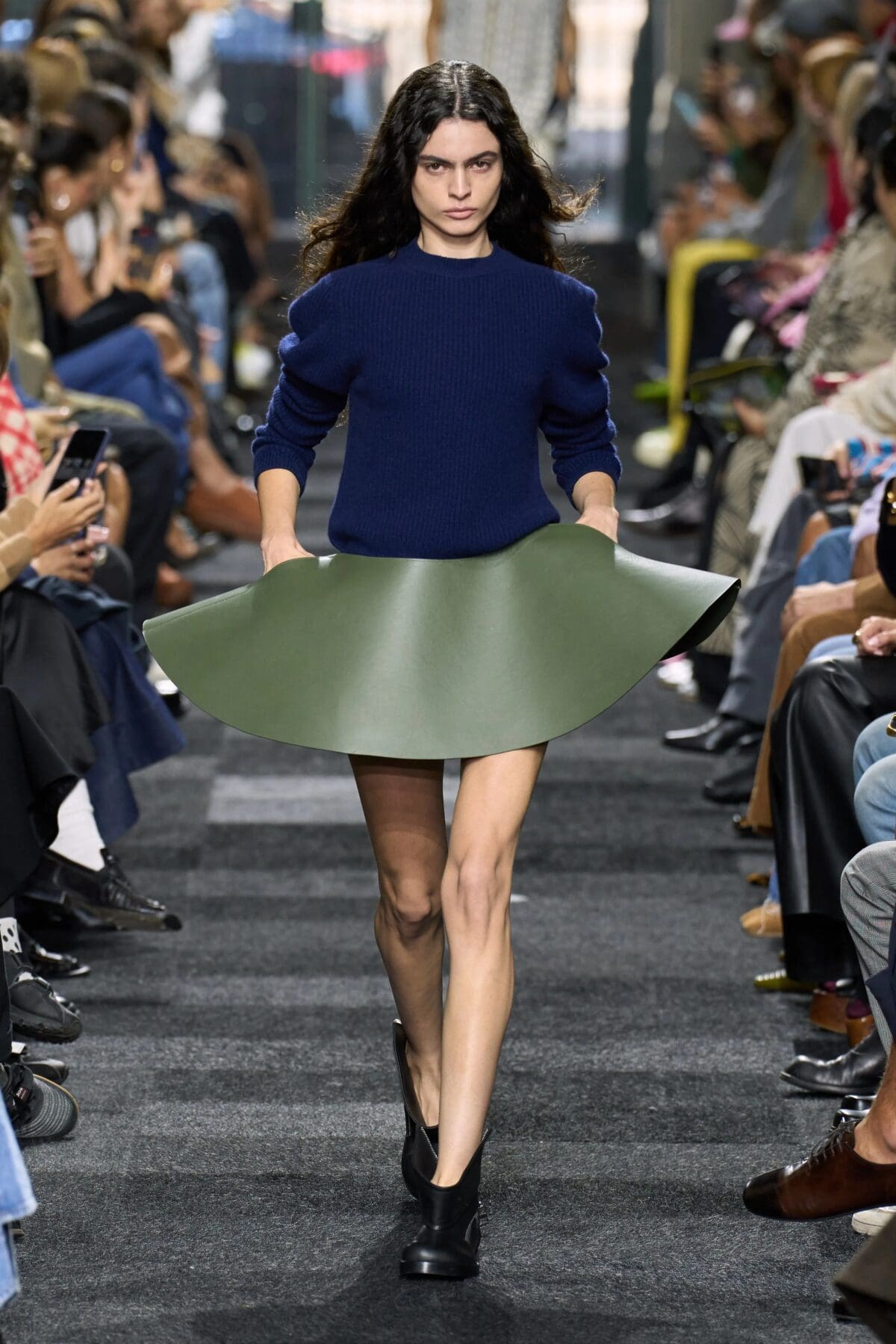 不論是甚麼顏色或材質,只要是極短且帶有皮革質感的迷你裙,就符合2025春夏的流行標準。這類裙裝以簡潔俐落的直線剪裁為主,方便搭配多樣風格。不僅如此,全身皮革造型(Total Leather Look)也是不可忽視的選擇,尤其是那些符合當季流行色調的設計。