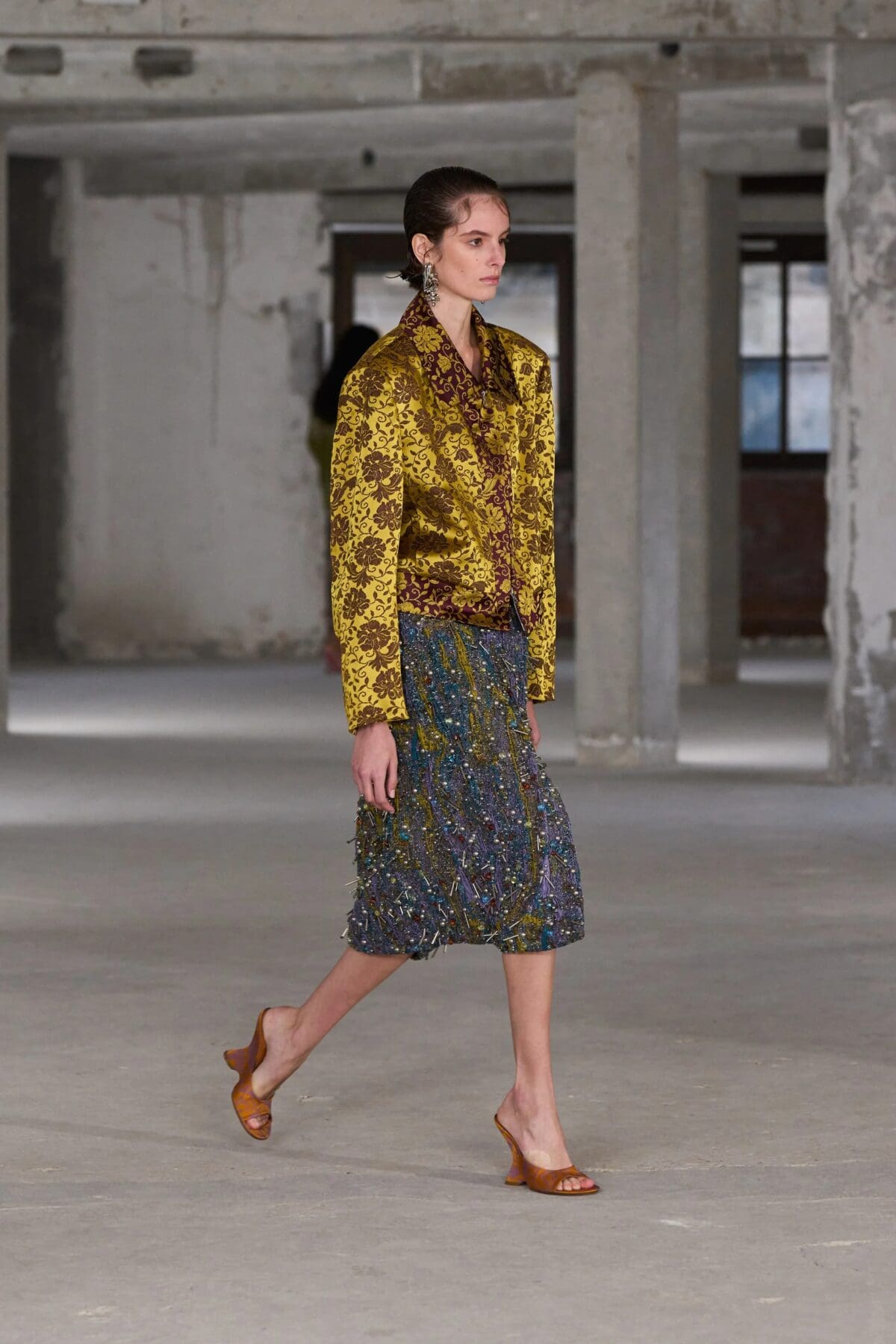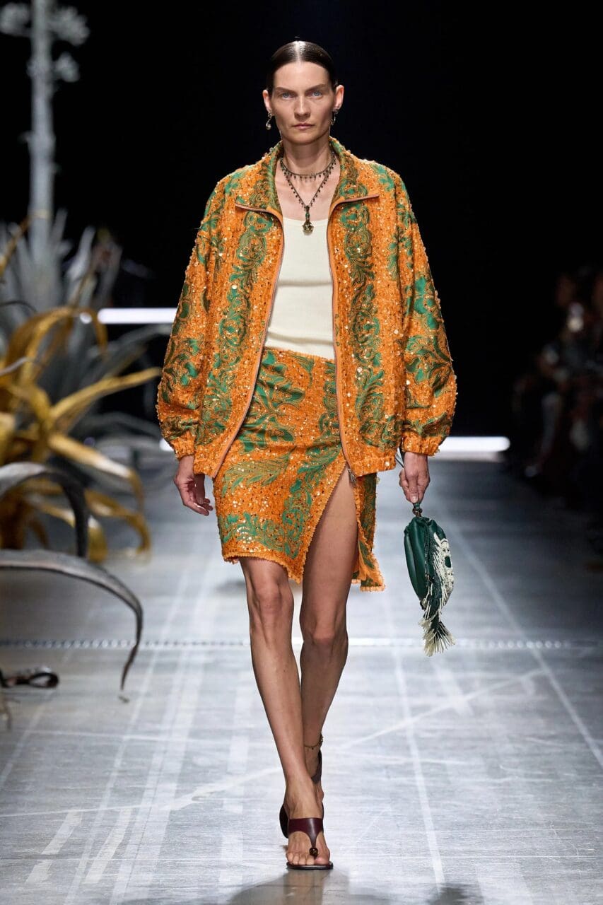 2025春夏的亮片裙不再局限於傳統的水晶或亮片裝飾,而是以五彩斑斕的小珠串成各種圖案,讓裙裝宛如璀璨的珠寶,一經穿上便能成為全場焦點。