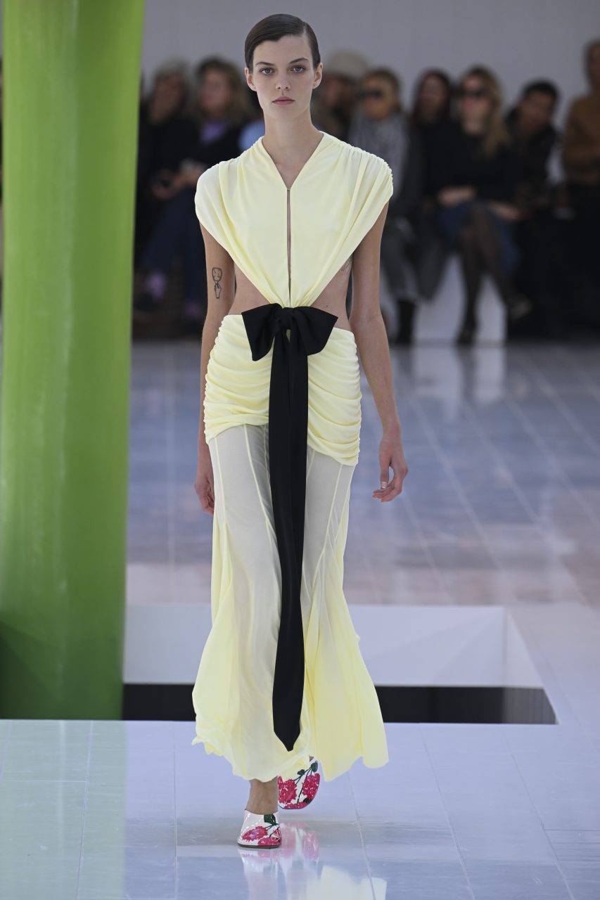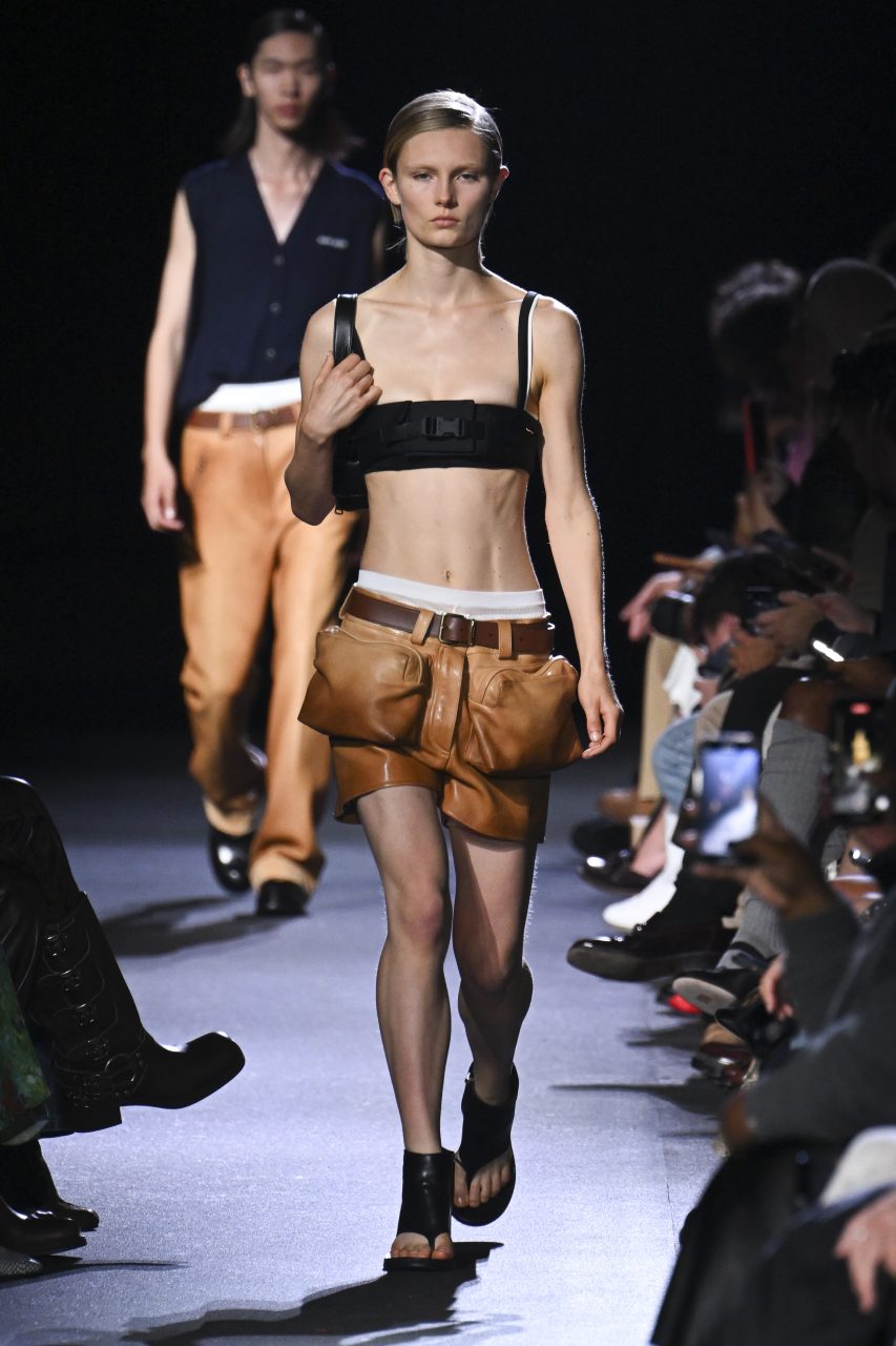 伴隨著近幾季Y2K潮流回歸,低腰褲裝似乎在2023年的春夏保持強勁聲勢,女性宜毫不吝嗇地展現自己腰身至臀部的優美線條,配合稍稍露出的內褲邊,或更能透露出若隱若現的性感與嫵媚。像Miu Miu、Stella McCartney、Coperni等品牌便是最佳示範。