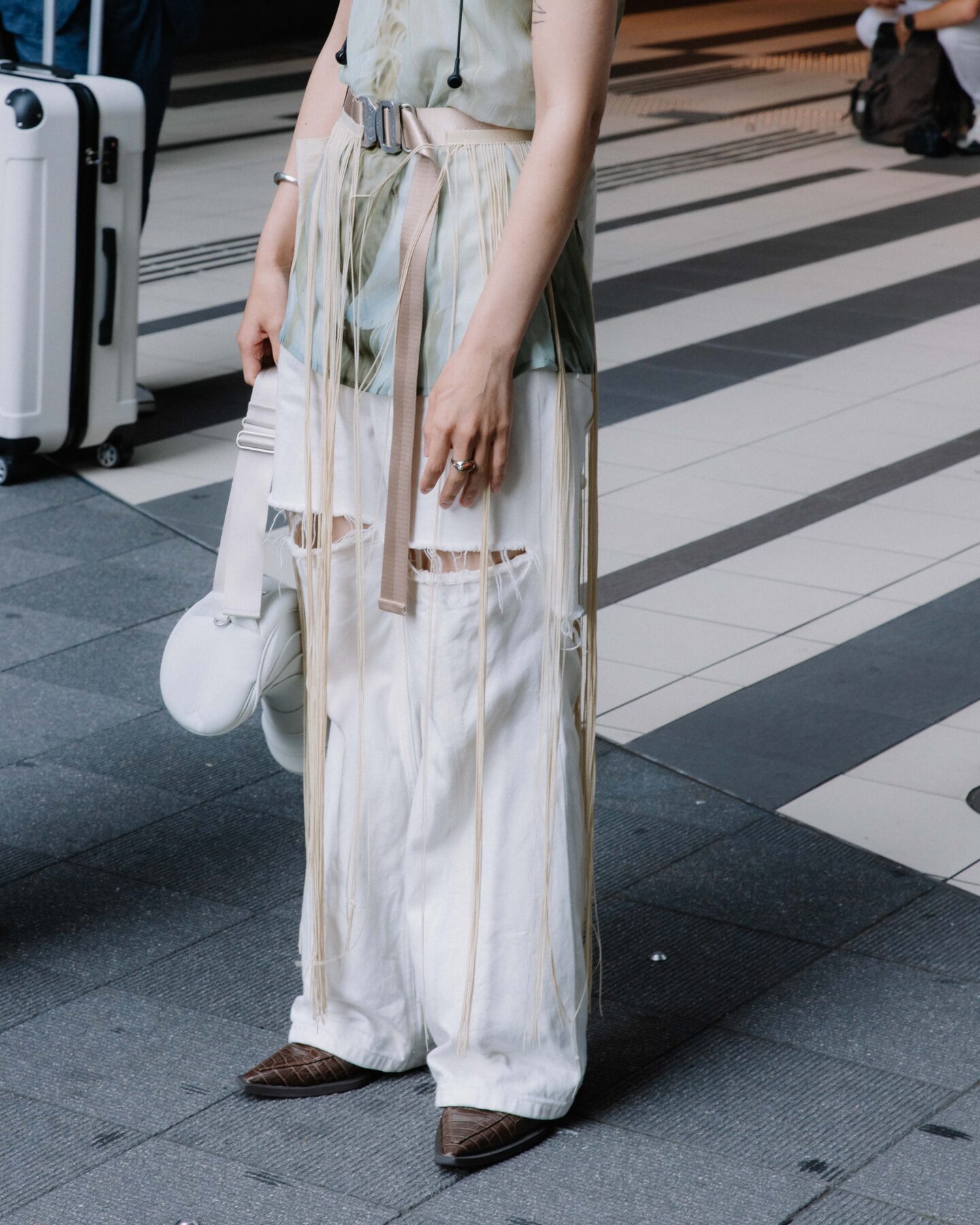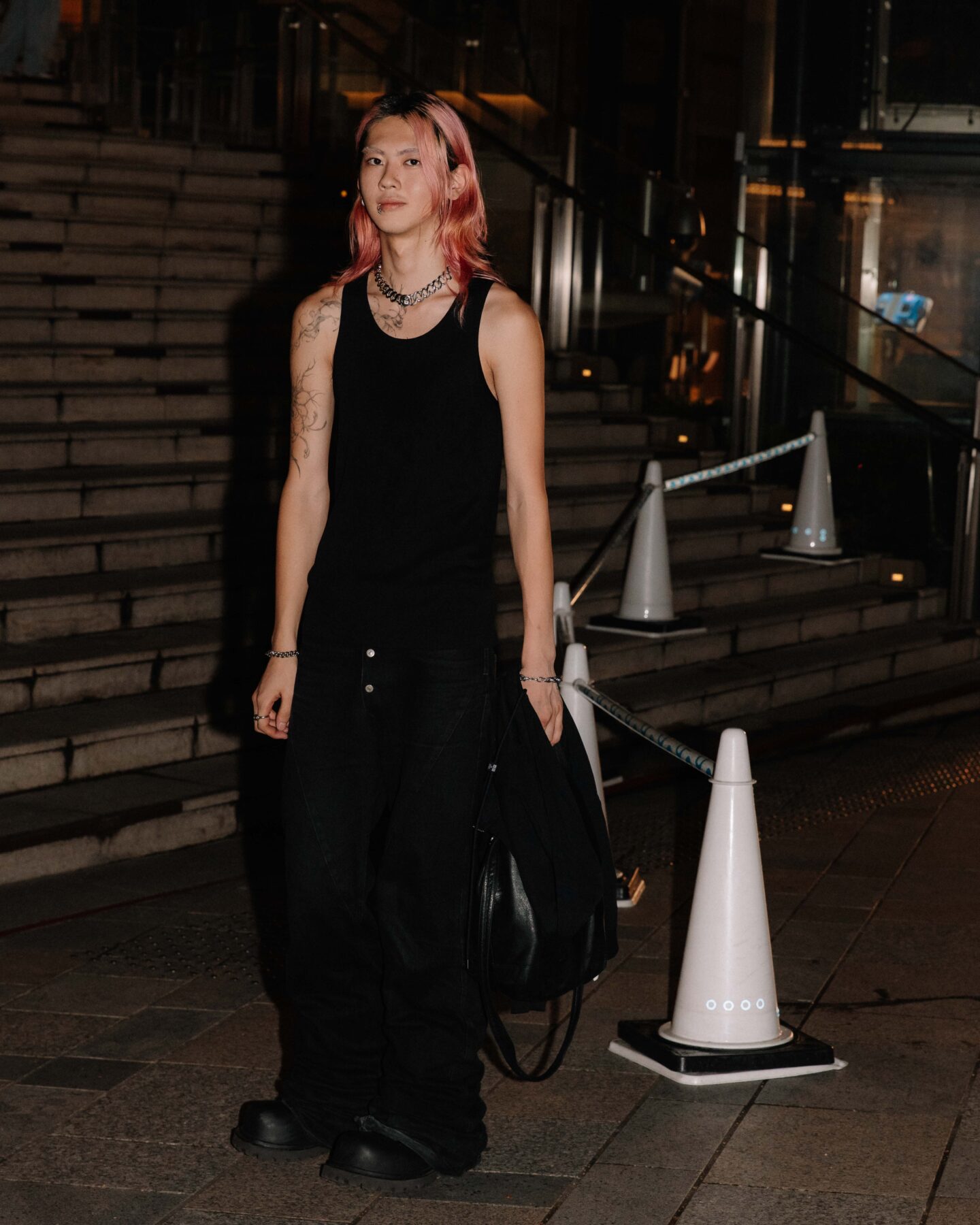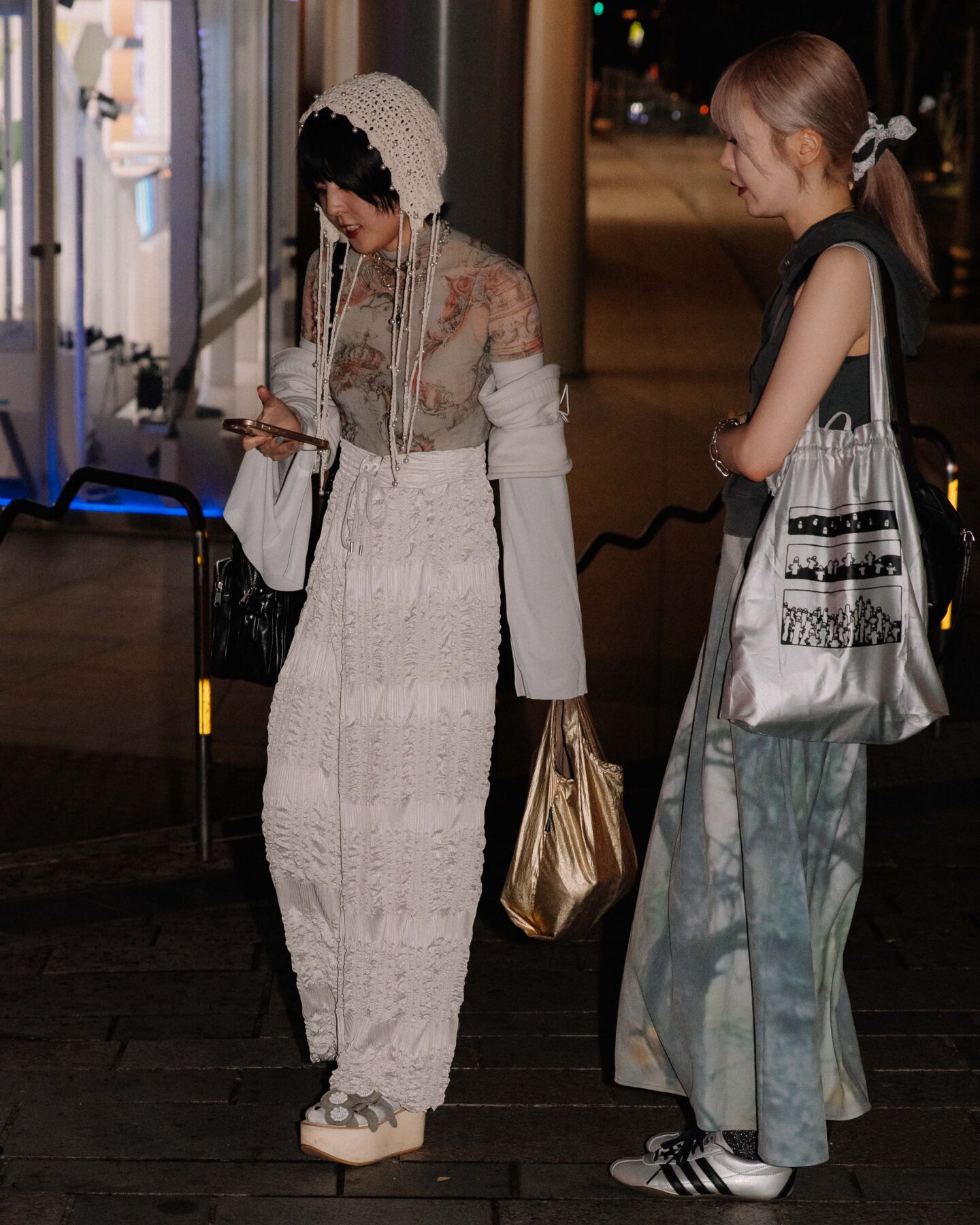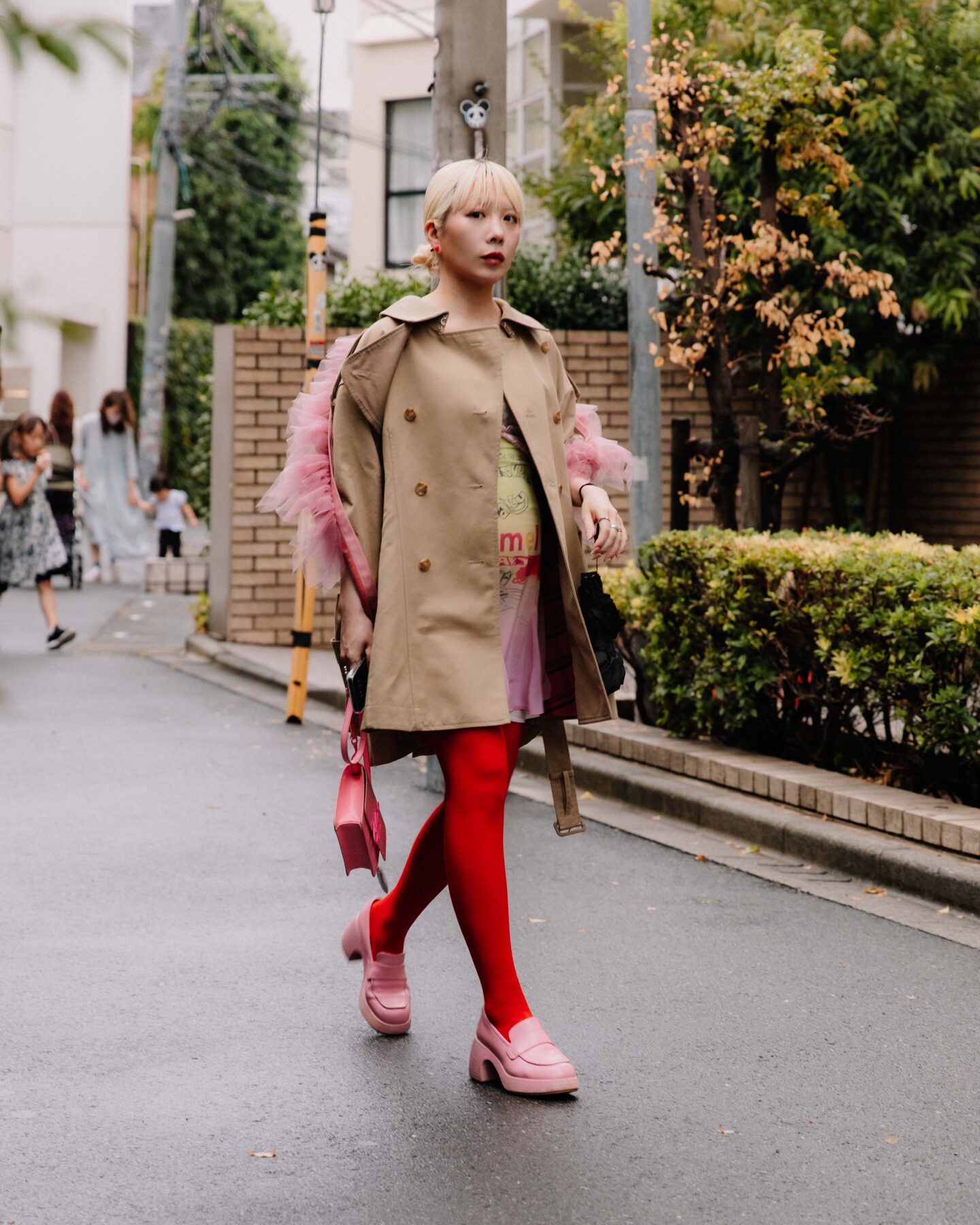 鞋履成為造型的視覺焦點,從彩色皮鞋、拼色運動鞋到解構式高跟鞋,設計皆帶有誇張比例與趣味感。鮮明的用色與不規則造型,突破功能界限,令鞋子成為街拍影像中最搶眼的細節。這種將「鞋」視為造型主角的方式,展現了東京街頭對時尚實驗的無限想像。