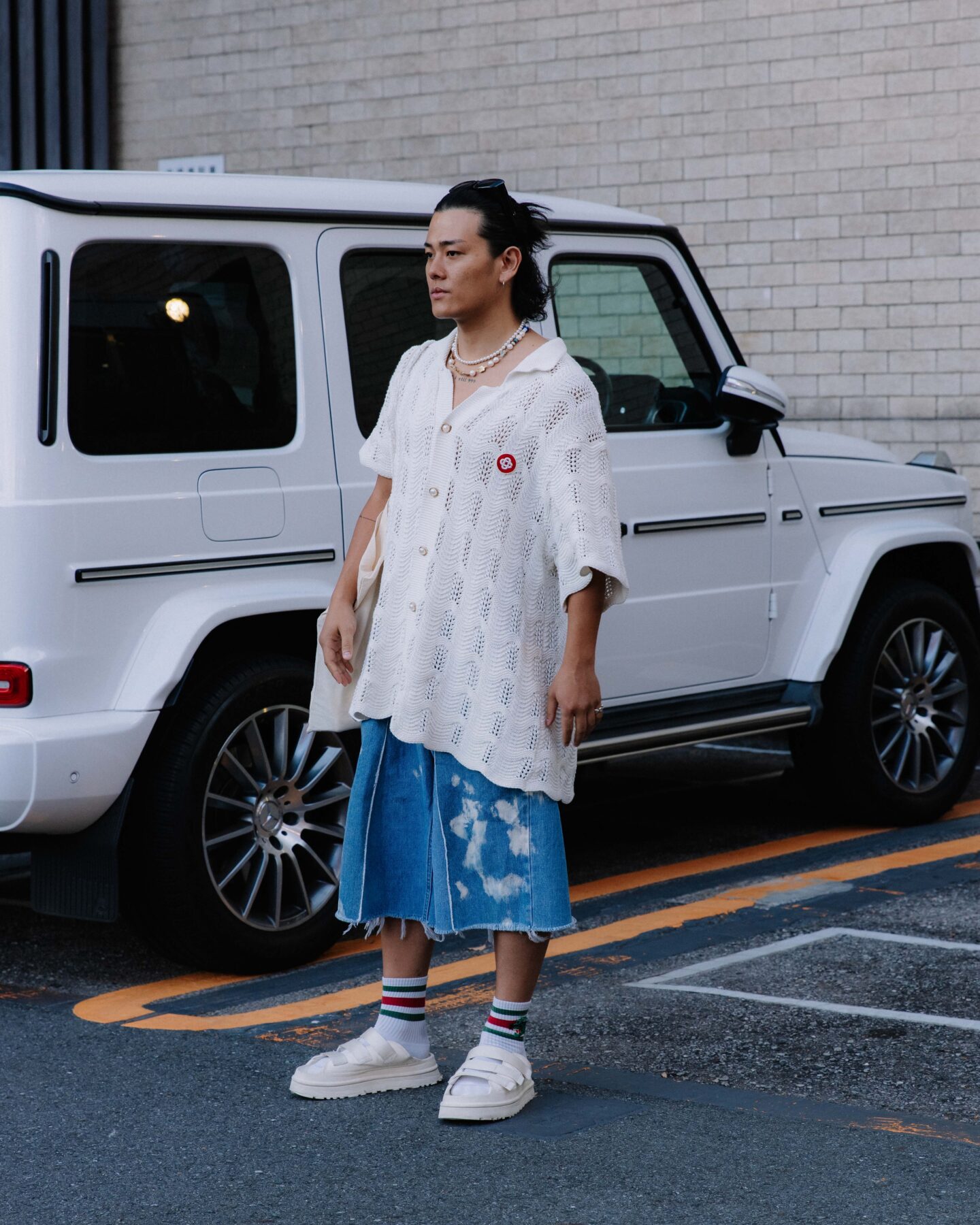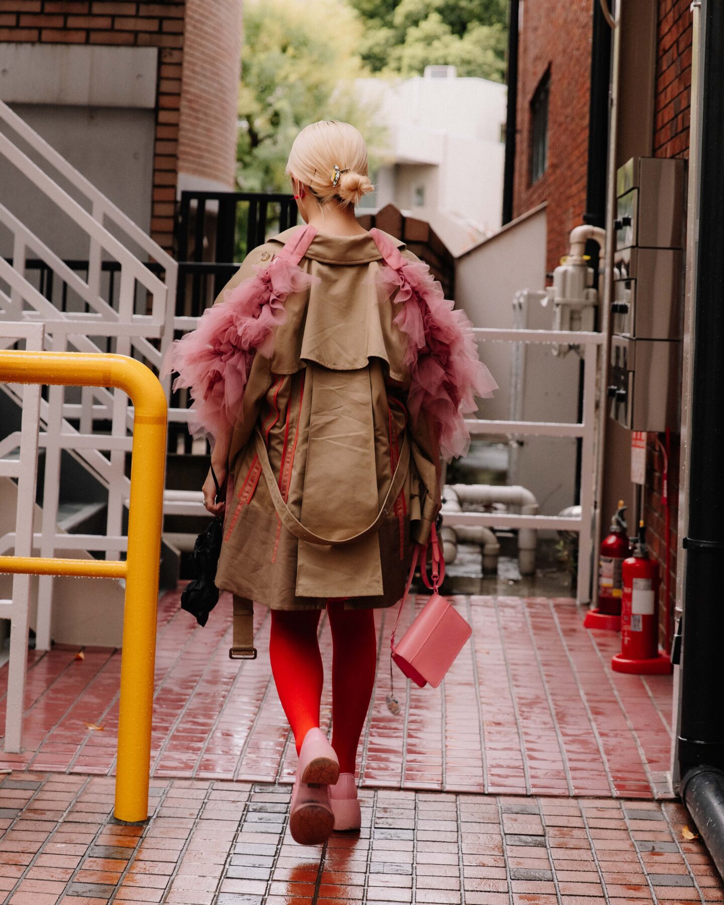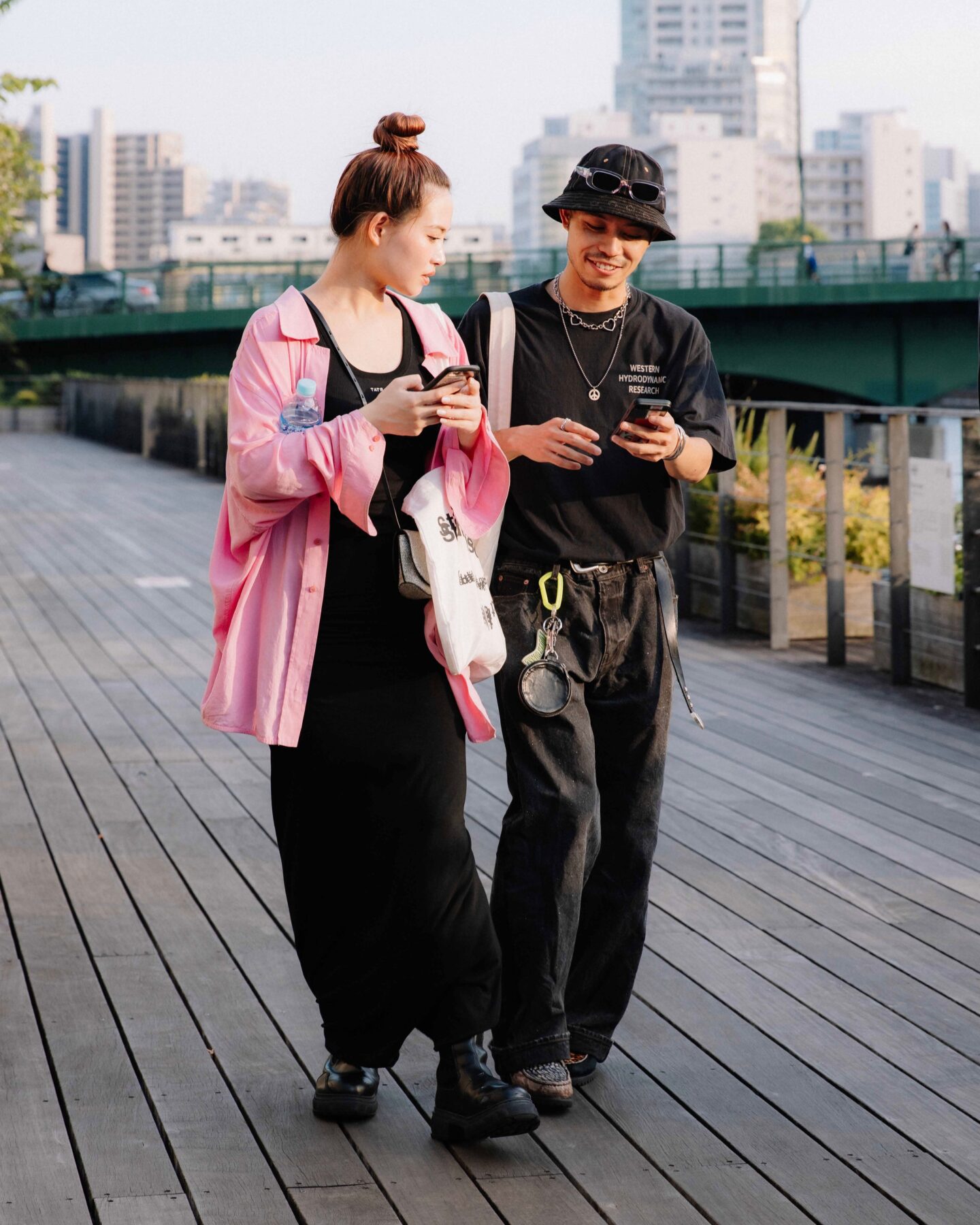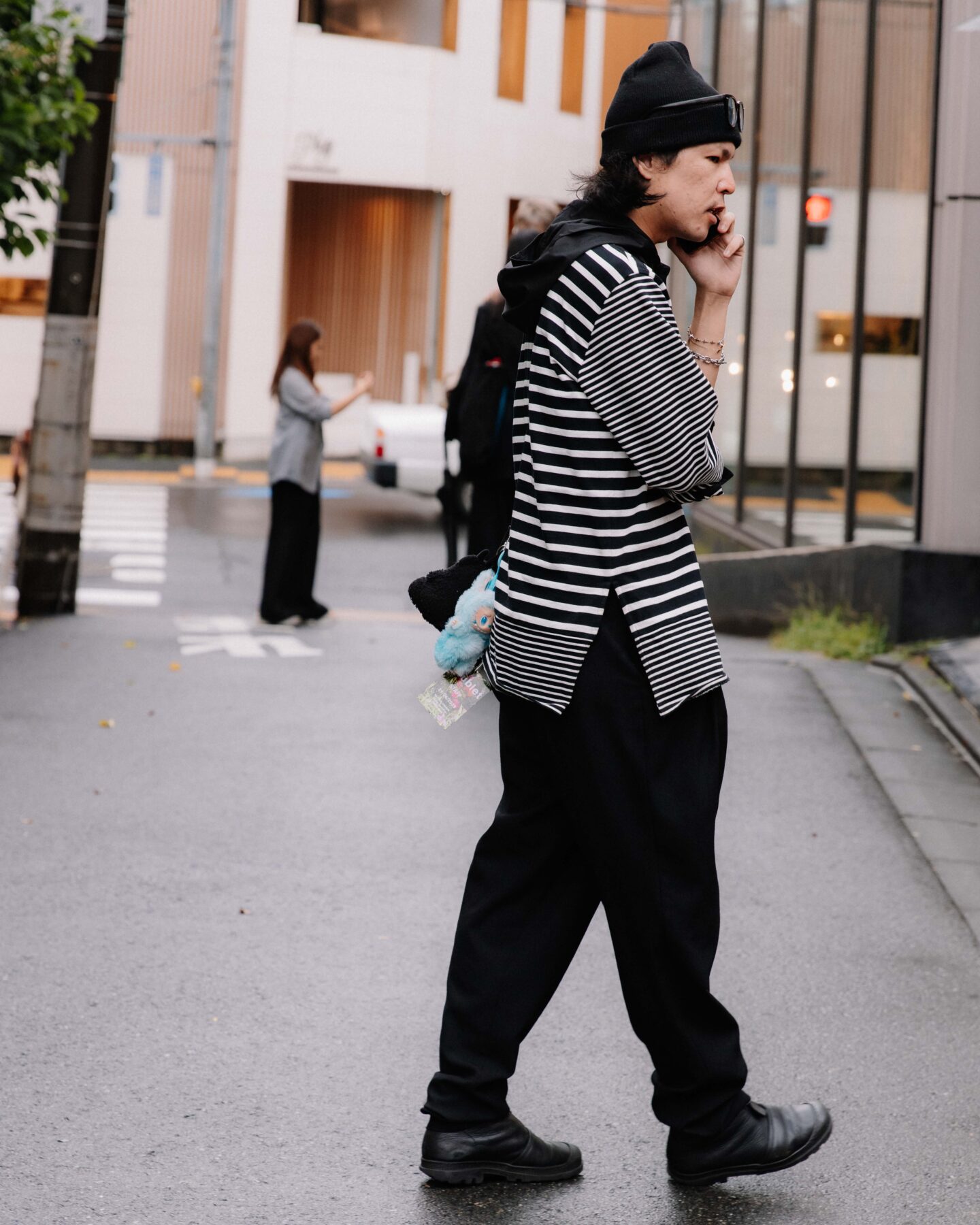 鞋履成為造型的視覺焦點,從彩色皮鞋、拼色運動鞋到解構式高跟鞋,設計皆帶有誇張比例與趣味感。鮮明的用色與不規則造型,突破功能界限,令鞋子成為街拍影像中最搶眼的細節。這種將「鞋」視為造型主角的方式,展現了東京街頭對時尚實驗的無限想像。