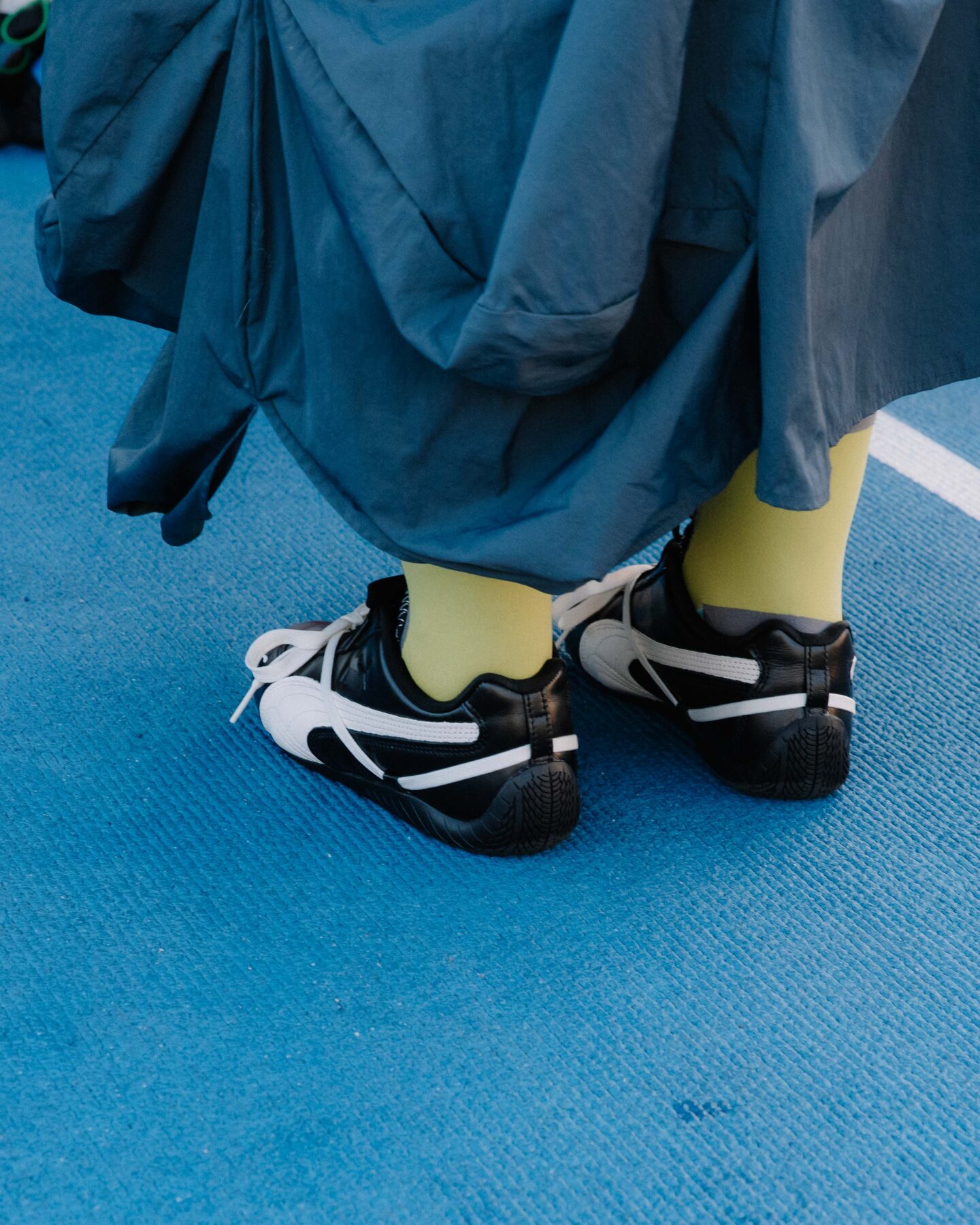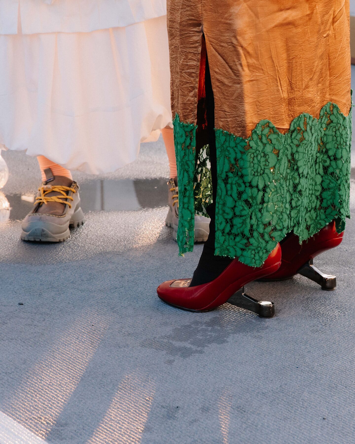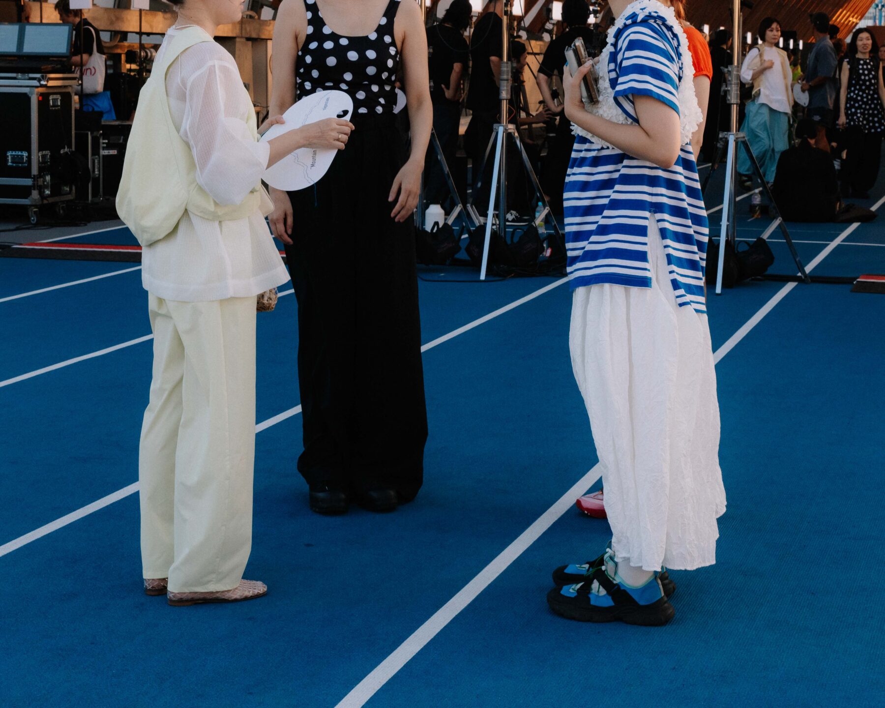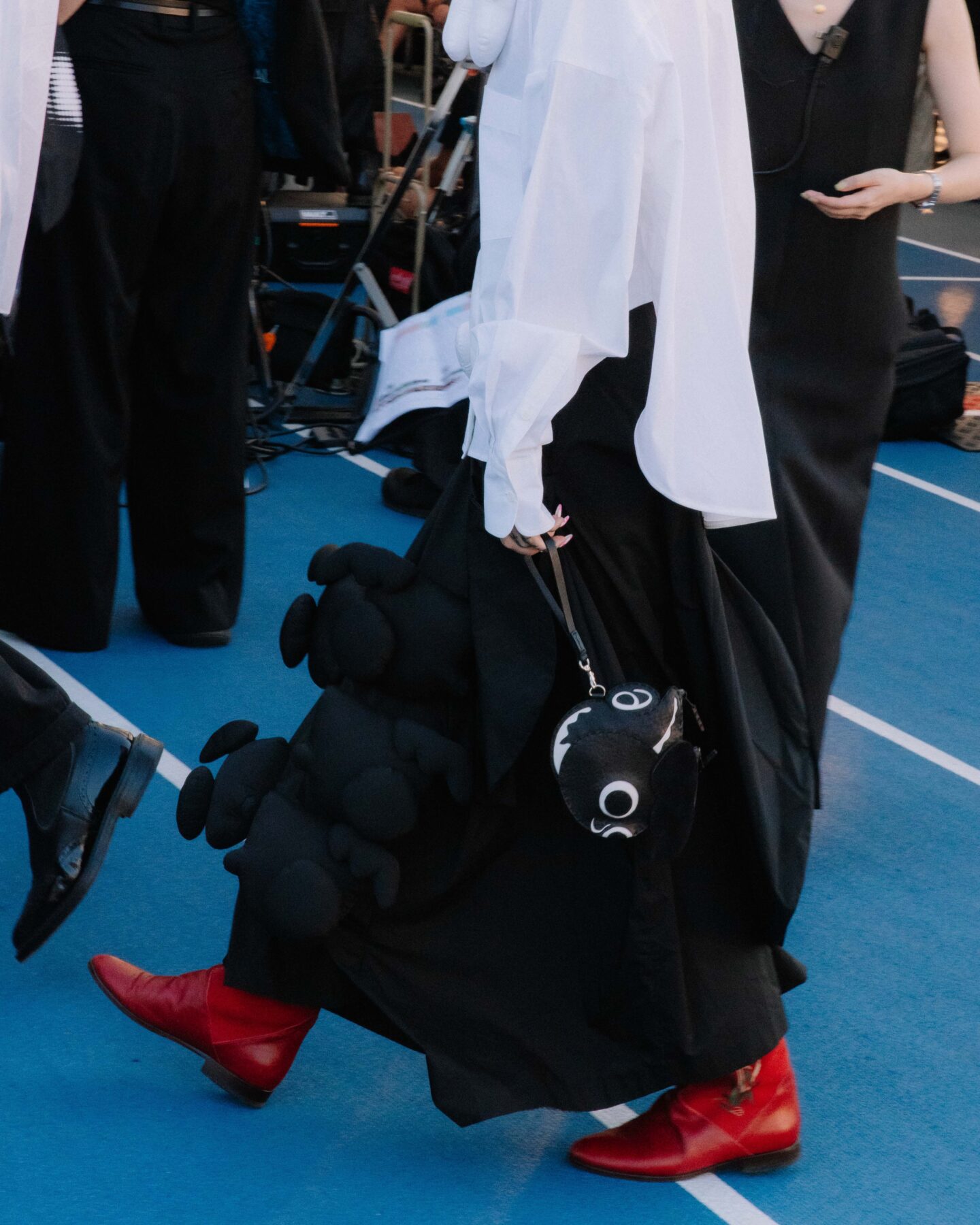 鞋履成為造型的視覺焦點,從彩色皮鞋、拼色運動鞋到解構式高跟鞋,設計皆帶有誇張比例與趣味感。鮮明的用色與不規則造型,突破功能界限,令鞋子成為街拍影像中最搶眼的細節。這種將「鞋」視為造型主角的方式,展現了東京街頭對時尚實驗的無限想像。
